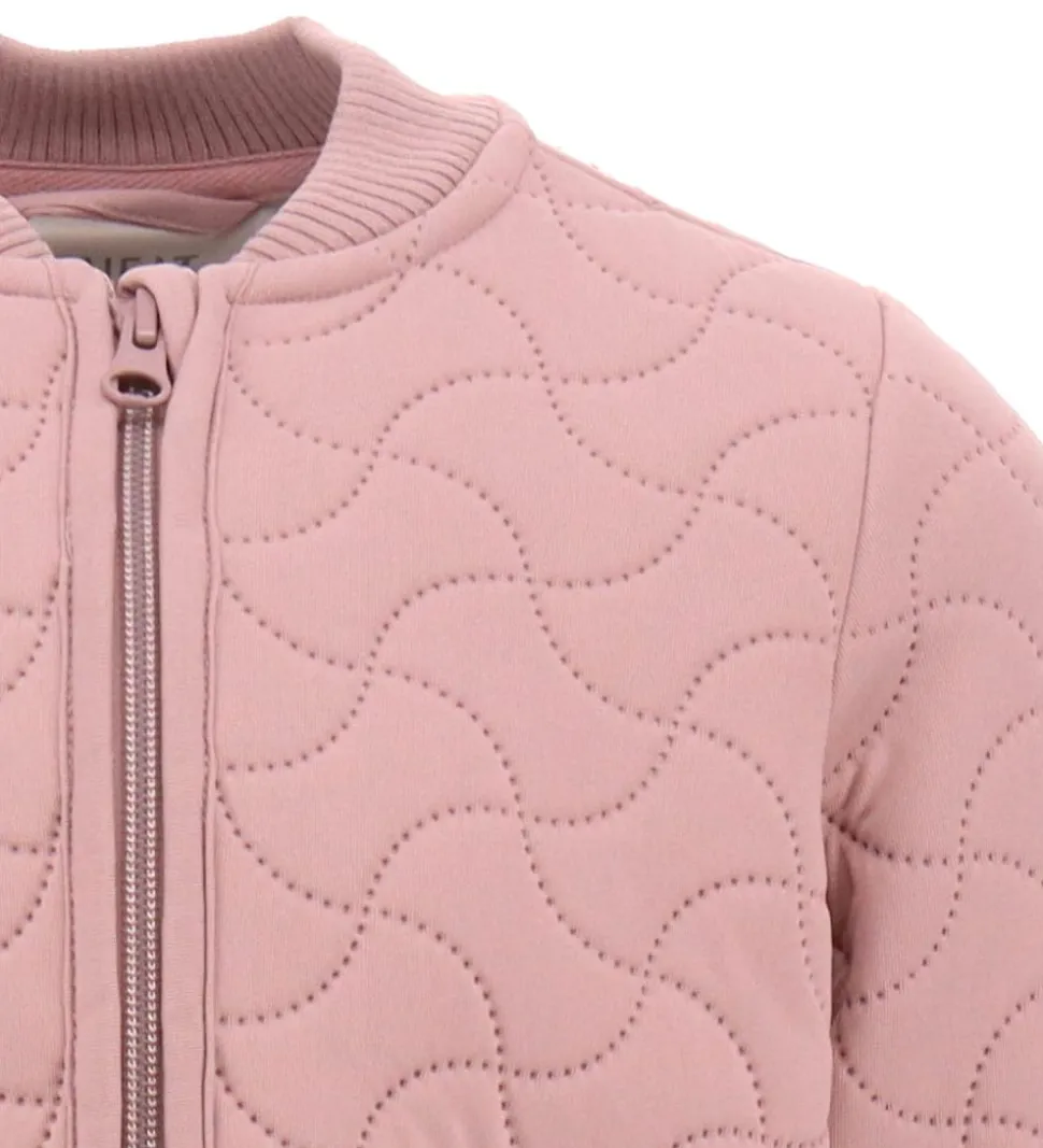 Flot Wheat termojakke i pudderrosa med et bølgende, quiltet mønster.