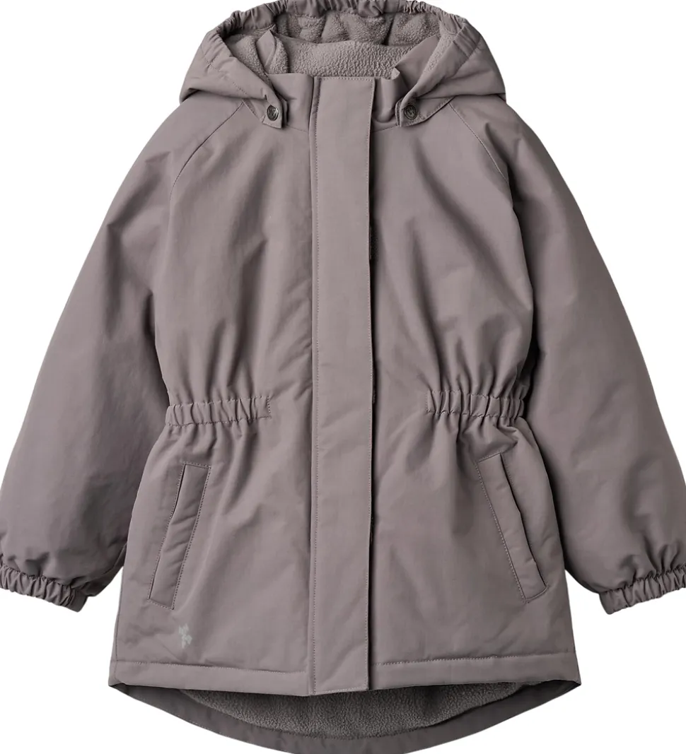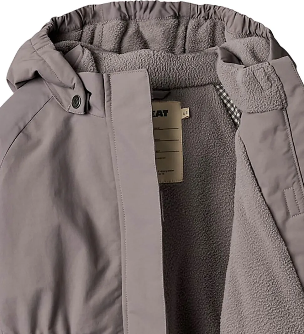 Wheat vinterjakken har en aftagelig hætte, der sidder fast med trykknapper omkring den høje halskrave, og ansigtsåbningen har elastikkant. Ærmerne har fleeceforede elastikkanter i åbningerne.