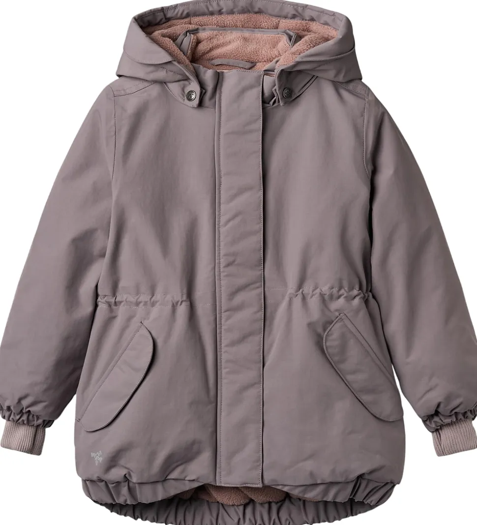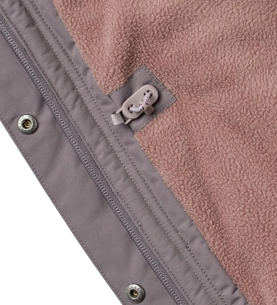 Vinterjakken er vatteret og foret med fleece på nær i ærmerne, som har et glatvævet for.