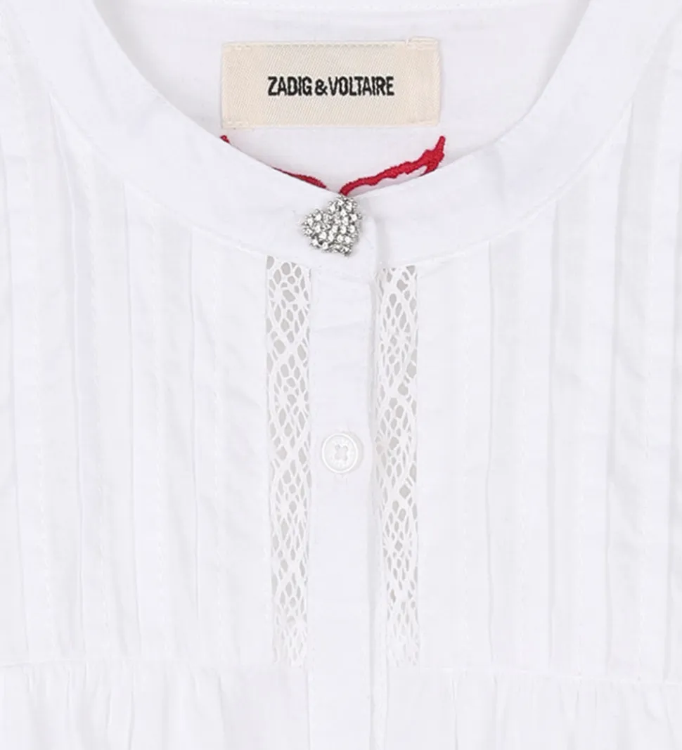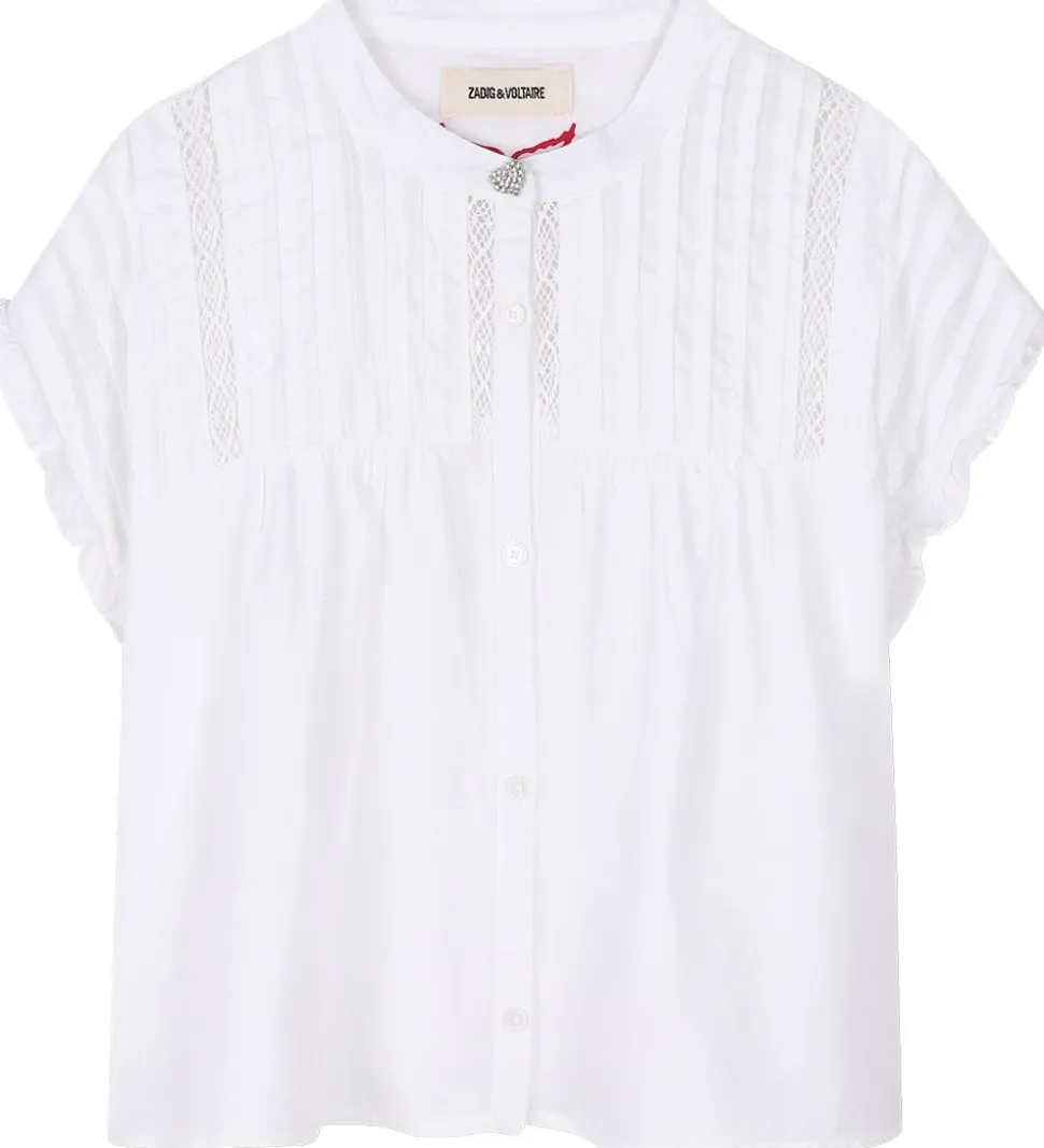 Fin Zadig & Voltaire skjorte i ensfarvet hvid i en let, fastvævet kvalitet og med flotte blonder øverst på fronten.