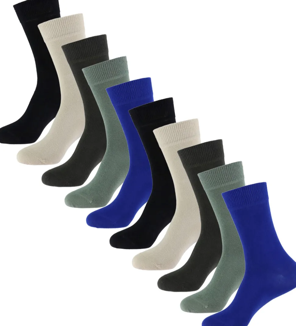 Elegante Björn Borg strømper i en 10-pak med farverne sort, beige, grøn, grå og blå. Björn Borg strømperne har lange skafter og en ribkant øverst, som sikrer en god pasform. Designet er ensfarvet og tidløst, velegnet til forskellige behov.