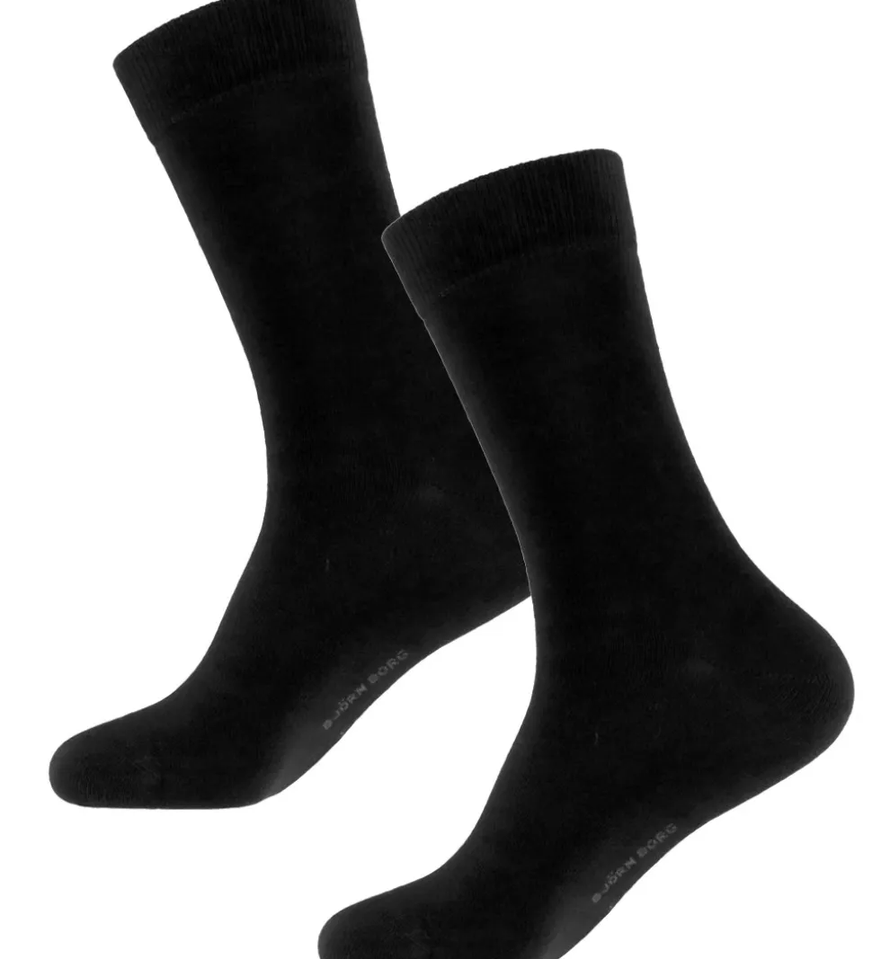 Stilrene Björn Borg strømper i en praktisk 2-pak i ensfarvet sort. Strømperne har et langt skaft og en smal ribkant, som sikrer en god pasform. Björn Borg strømperne er udført i et enkelt design uden mønster.