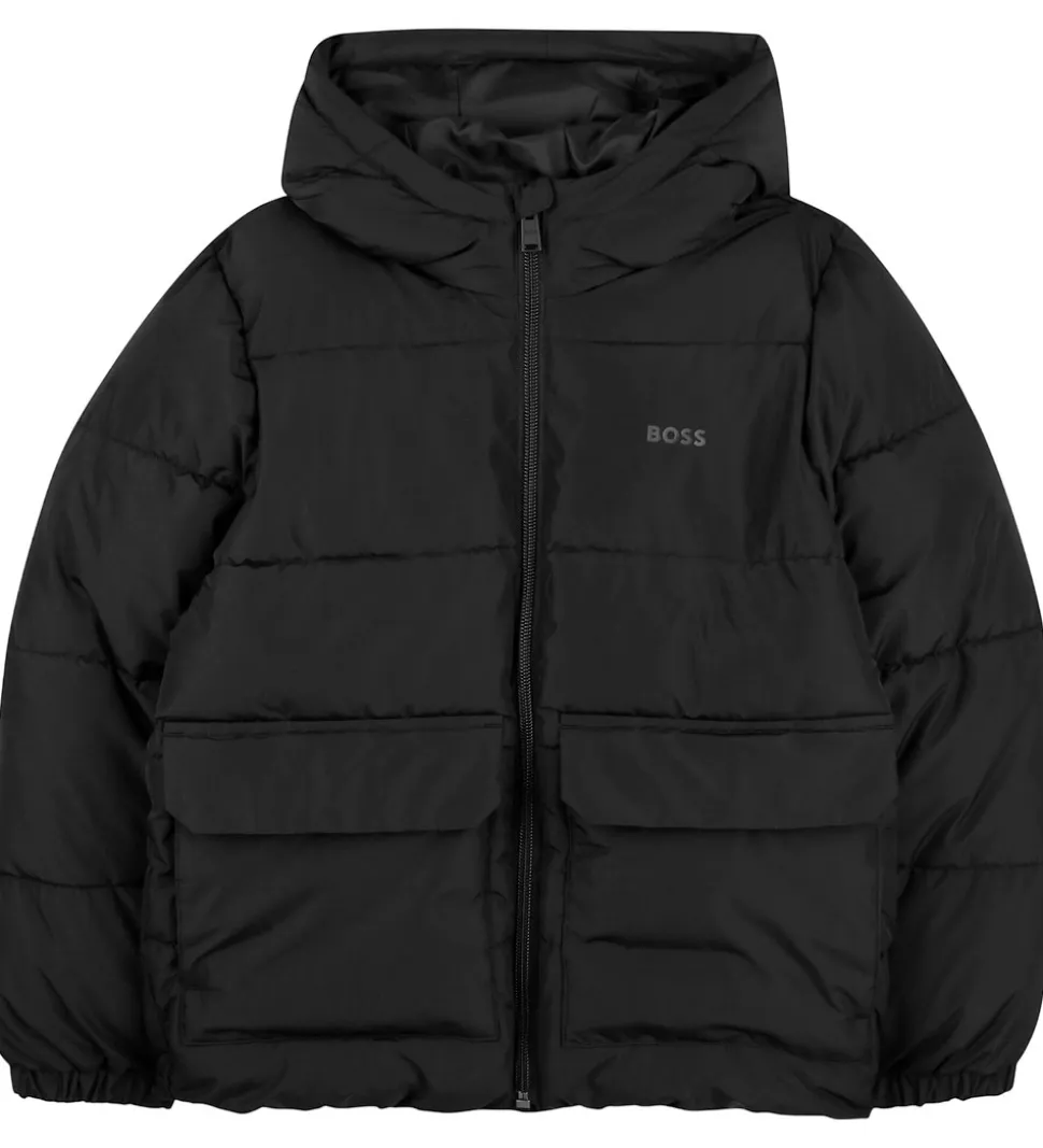 Lækker BOSS dynejakke i ensfarvet sort i en glatvævet kvalitet med vandrette syninger.