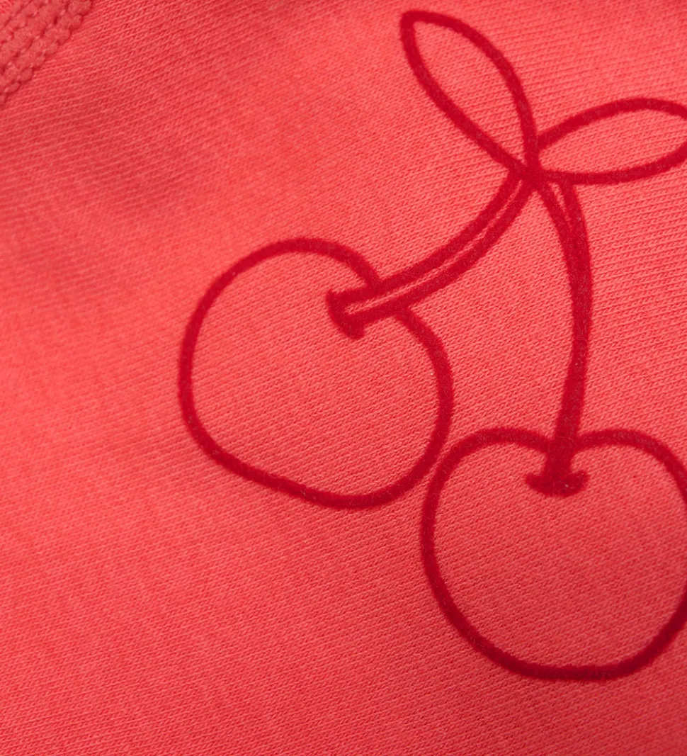 Smart CeLaVi elefanthue i ensfarvet orangerød med et sødt kirsebærprint.