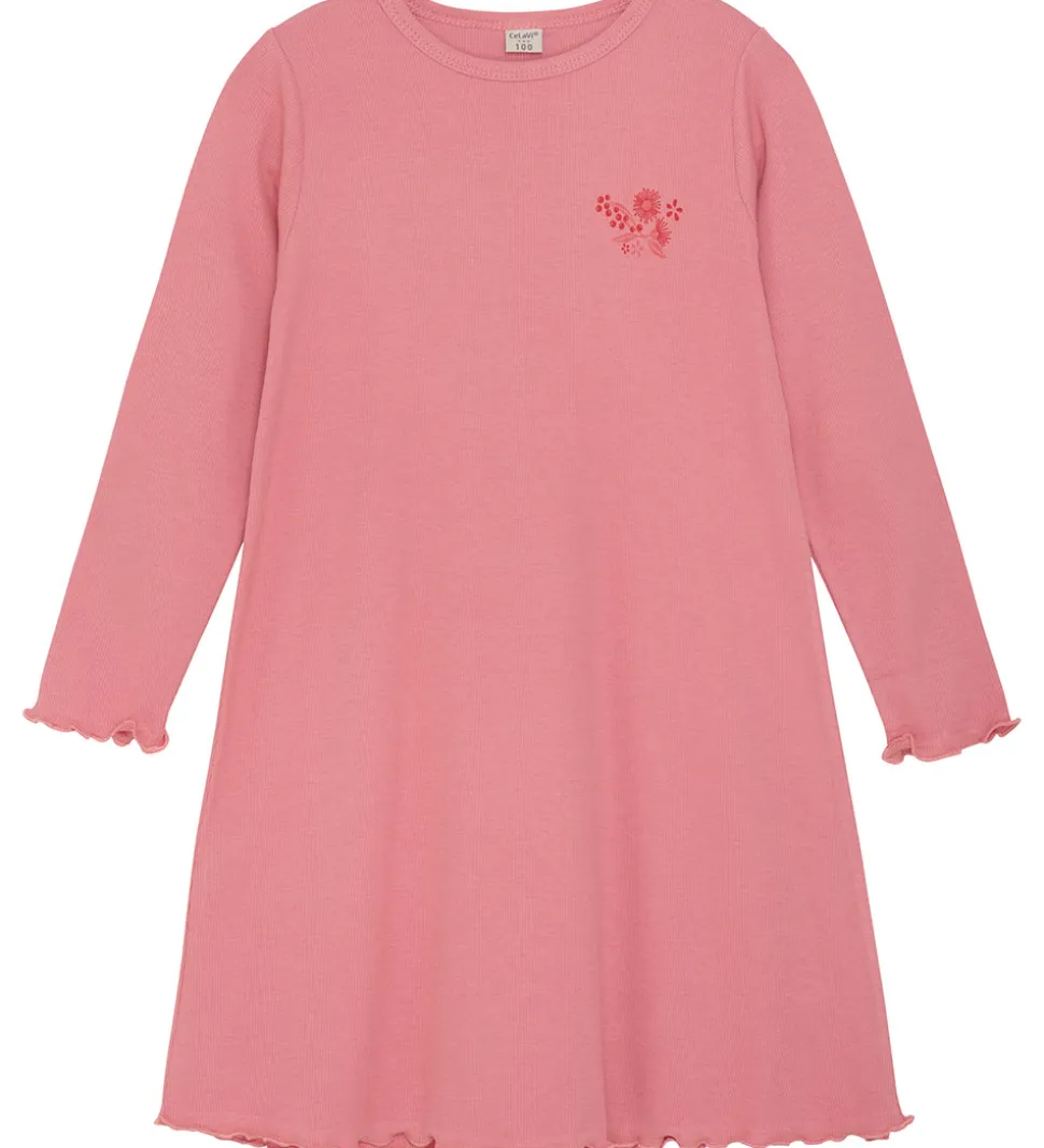 Lækker CeLaVi natkjole med lange ærmer i en blød rosa nuance. Den har et fint print af blomster i samme farve, hvilket giver en sød detalje til natkjolen.