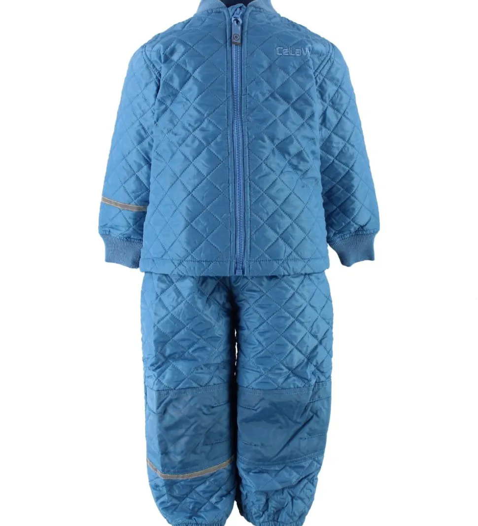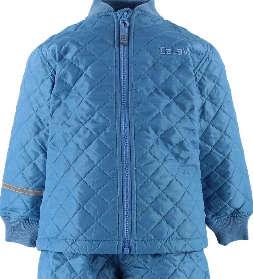 Lækkert CeLaVi termotøj i blå med en quiltet struktur i stoffet.