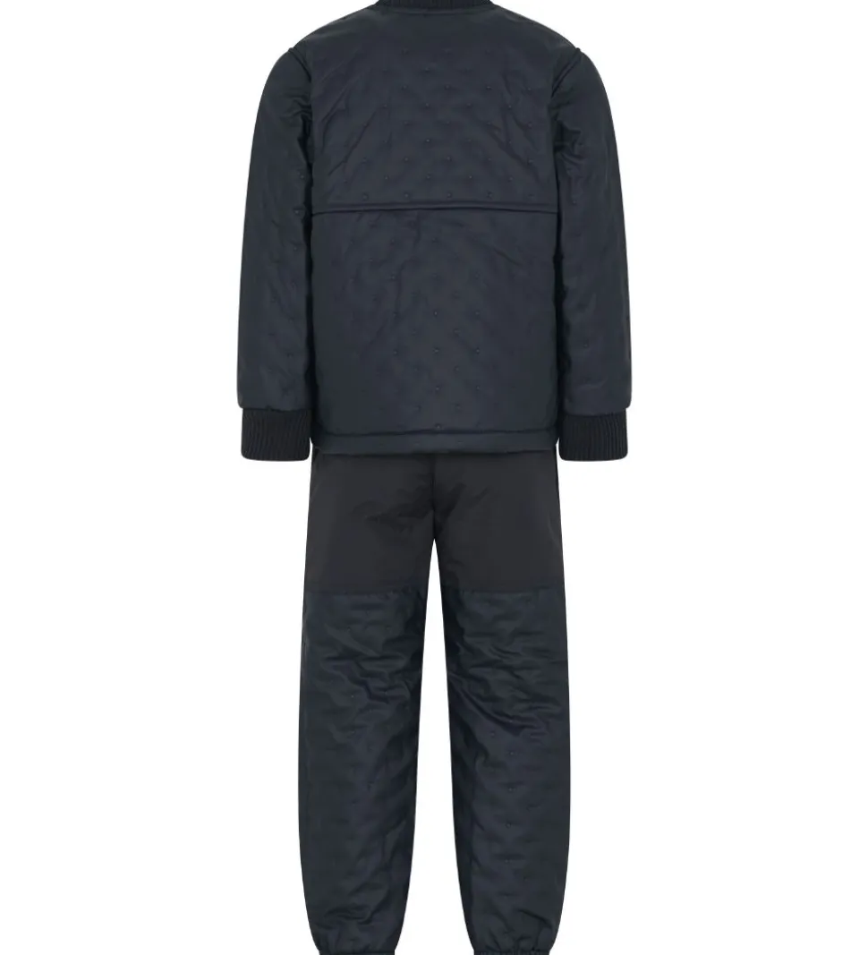 Lækkert CeLaVi termotøj i mørk navy. Sættet består af en termojakke og et par termobukser med en praktisk PU-coating og fleeceforing.