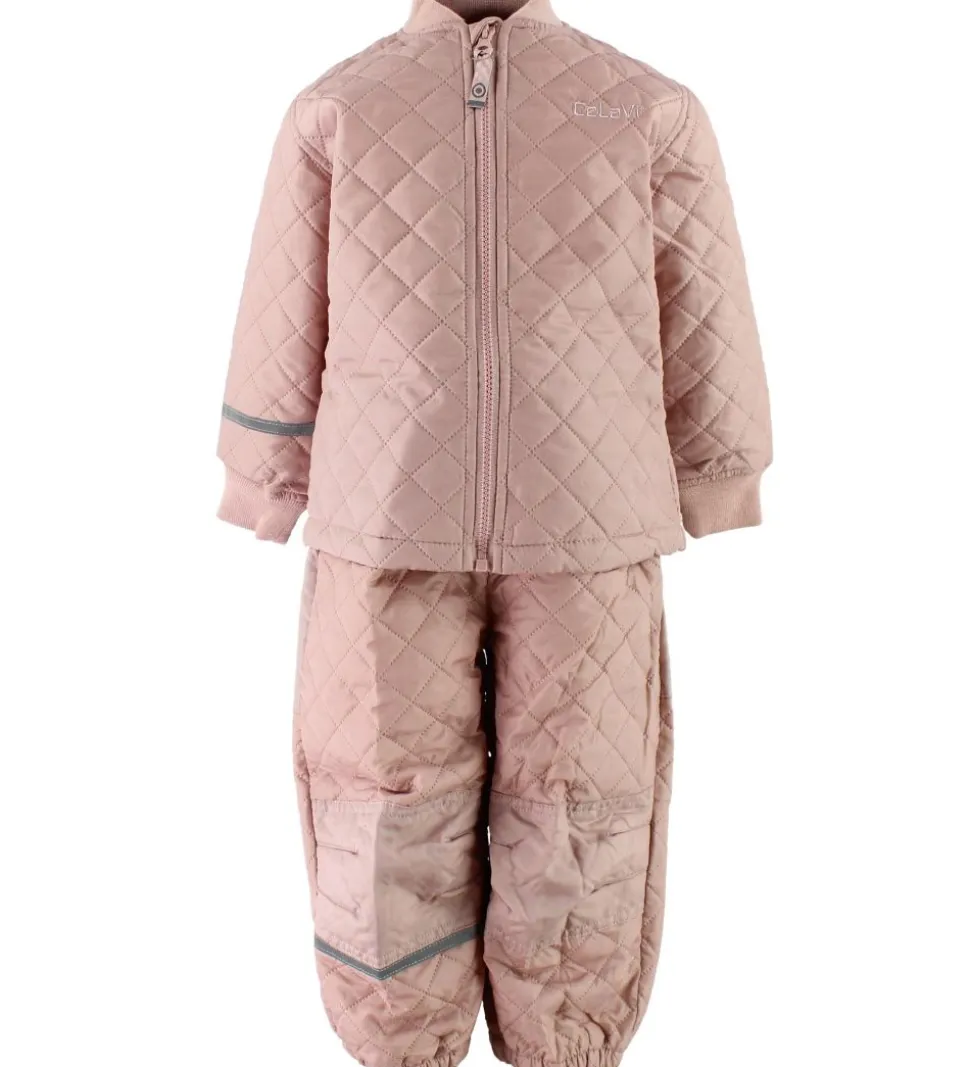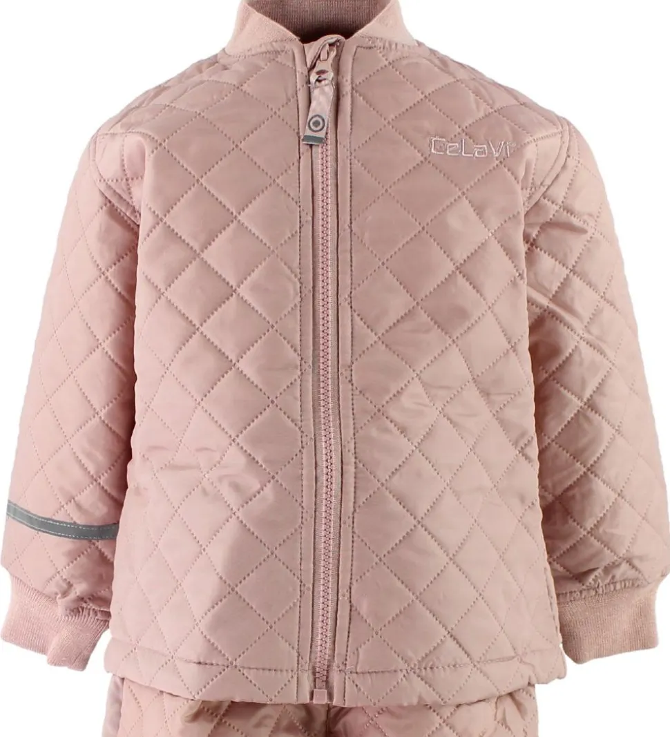 Sødt CeLaVi termotøj i støvet rosa med en quiltet struktur i stoffet.