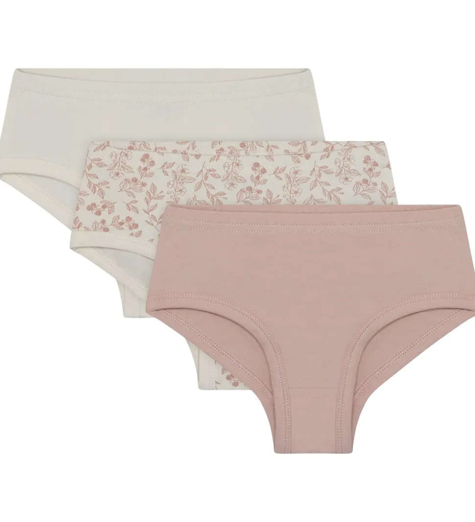 Flotte CeLaVi trusser solgt i en 3-pak. Trusserne er hhv. ensfarvet rosa, ensfarvet hvid og hvid med print af bær, blomster og blade i rosa. CeLaVi trusserne har en elastikkant i taljen, som sikrer en behagelig pasform.