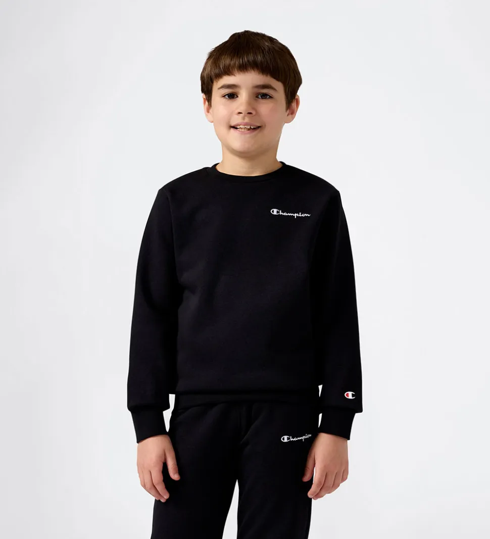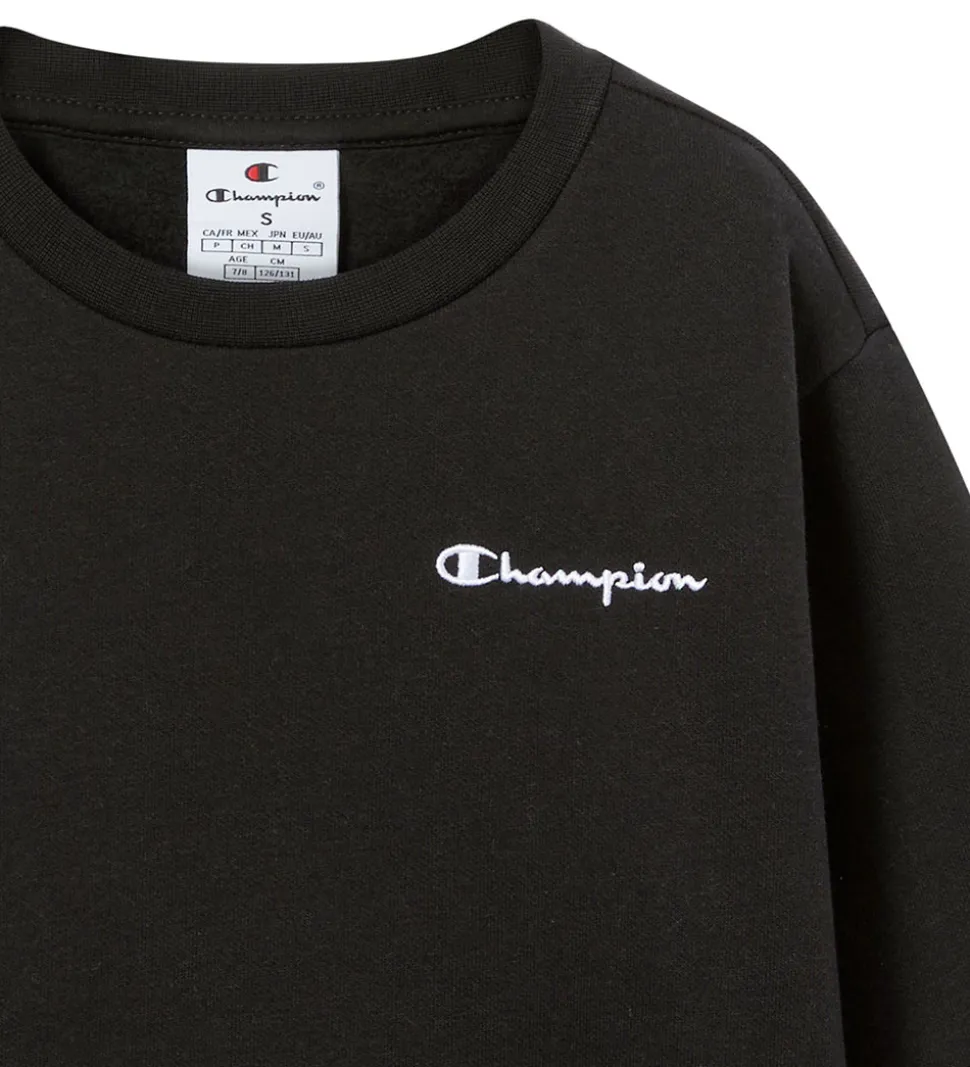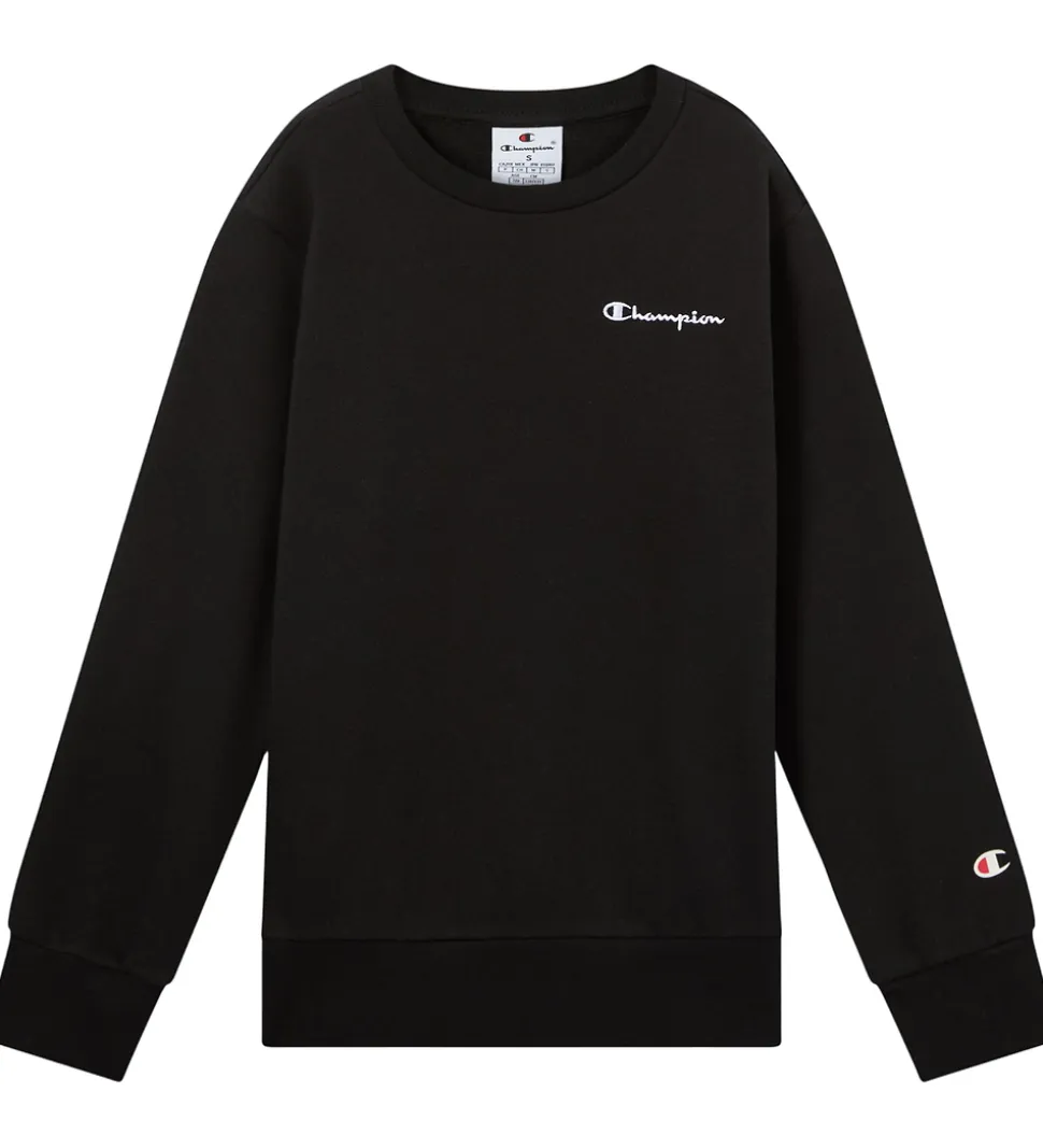 Flot Champion sweatshirt i sort med det klassiske Champion-logo broderet i hvid på venstre bryst. Champion sweatshirten har lange ærmer og ribkanter ved alle åbninger. Indvendigt er der blødt, børstet bomuld.