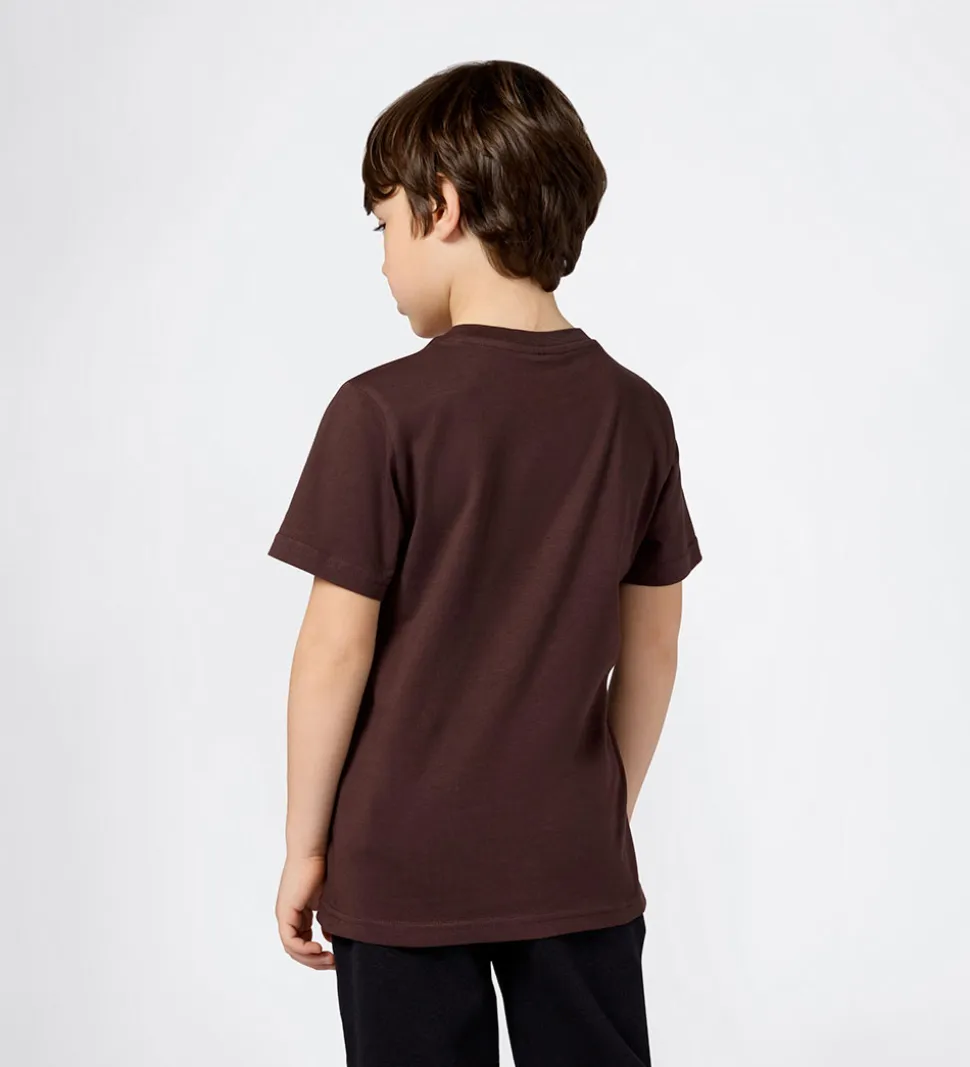 Sej Champion t-shirt i mørkebrun med et broderet logo i hvid på venstre bryst. Champion t-shirten har en rund halsudskæring med en smal ribkant og korte ærmer.