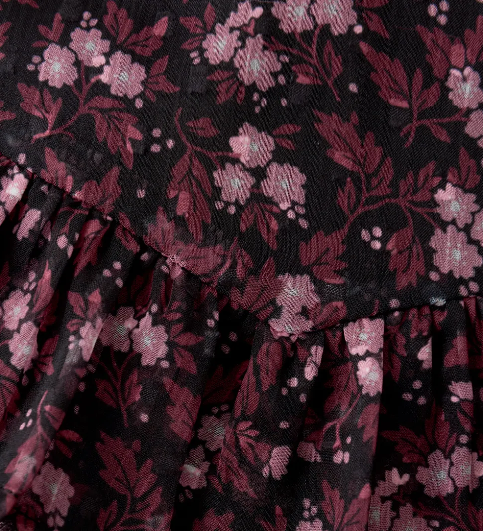 Elegant Creamie nederdel med mørke toner og et detaljeret blomsterprint. Nederdelen har en let og luftig struktur med flæsedetaljer, der giver et smukt fald. Creamie nederdelen har en elastisk kant i livet, der sikrer en behagelig pasform, og et inderskørt i glatvævet bomuld.