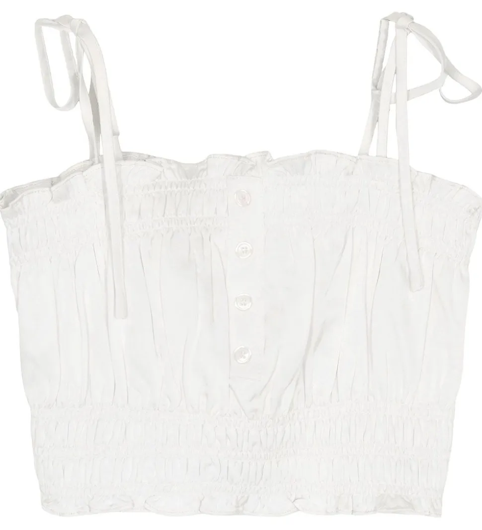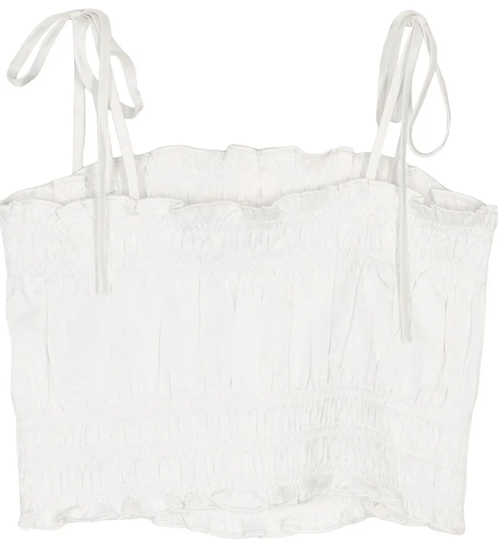 Designers Remix toppen har brede smock-syninger både i toppen og bunden, som sikrer en god, tætsiddende pasform. Toppen har smalle skulderstropper, som skal bindes og derved kan justeres så de passer lige som de skal. Toppen er i en lækker og glatvævet kvalitet.