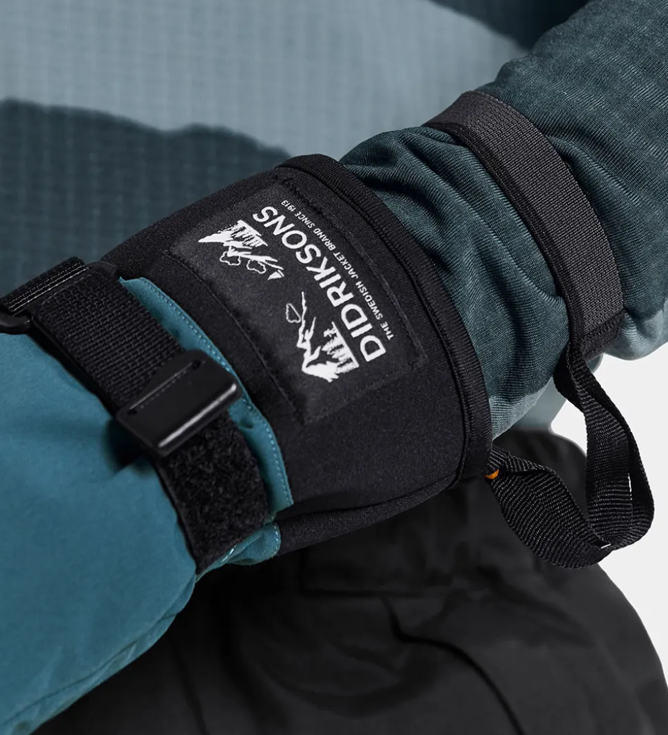 Didriksons lufferne har en smart neoprenkant i åbningerne samt elastikkant og velcrojustering omkring håndleddet, så kulde, sne og regn ikke let trænger ind. I håndfladerne er der belægninger af firkantede dupper, der giver en god gribeflade.