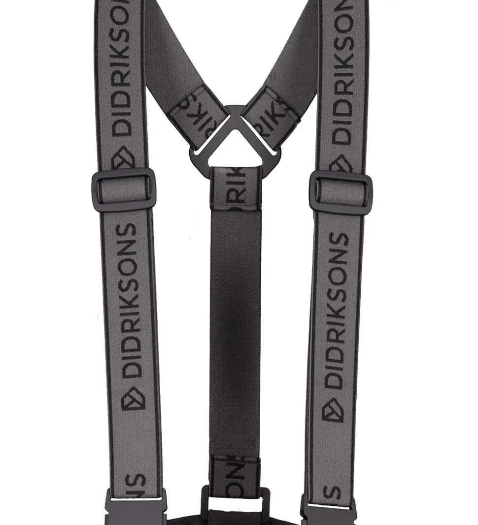 Didriksons skibukserne åbnes fortil med trykknapper og lynlås med dobbelt vindstolpe, hvoraf den udvendige lukkes til ved hjælp af velcro. Skibukserne har justerbare, aftagelige seler samt velcrojusteringer i livet. På venstre lår er der en skuljt lynlåslomme.