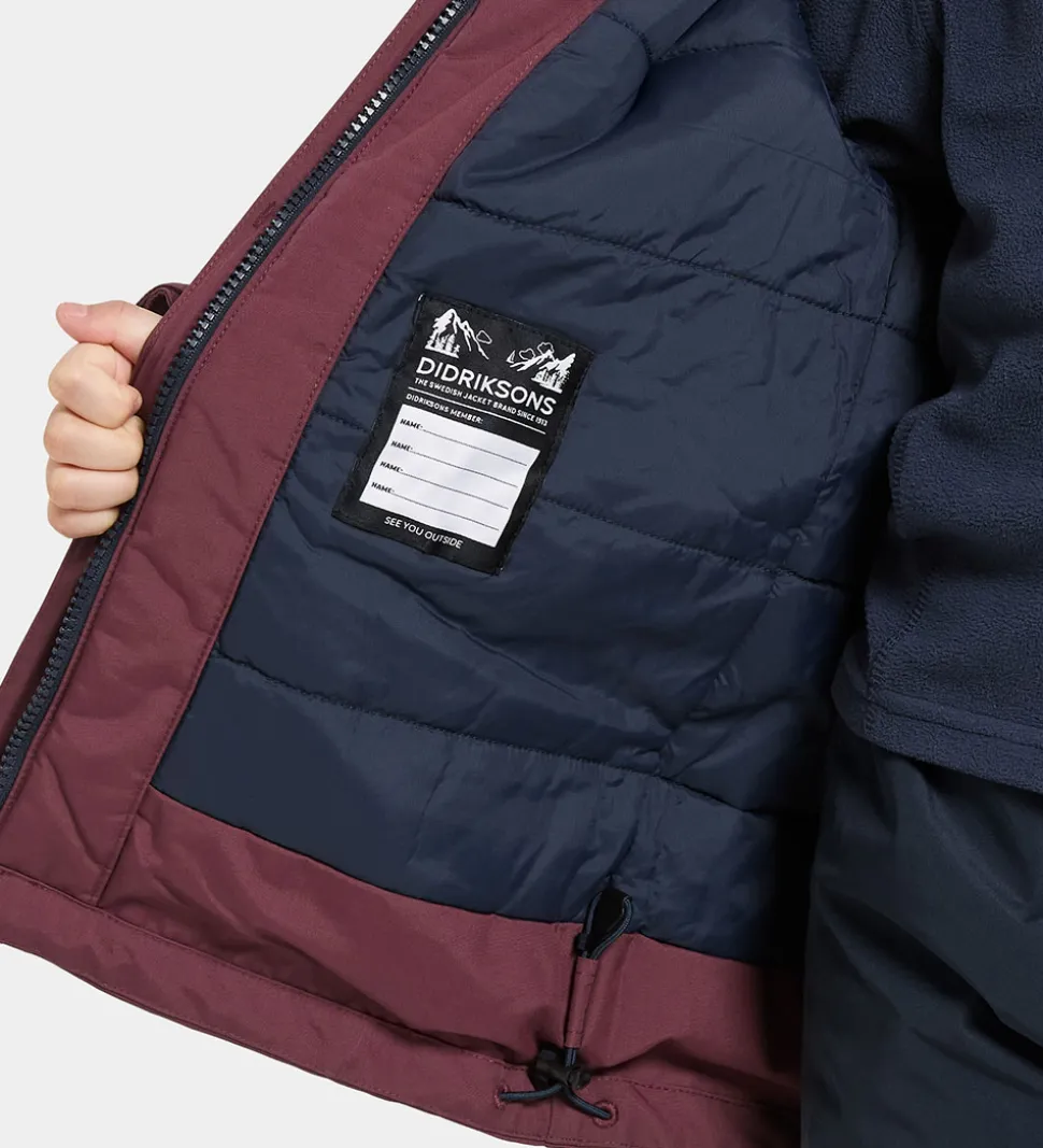 Didriksons vinterjakken har en aftagelig hætte, som sidder fast med skjulte trykknapper og velcro fortil, og pelskanten sidder fast med trykknapper. Hætten kan justeres i toppen med velcro. Ærmekanterne kan strammes ind med velcro, og der er praktiske snefang med rib og et lille hul til tommelfingeren. I livåbningen kan vinterjakken strammes ind med en elastiksnøre, og der er praktiske elastikseler på indersiden.