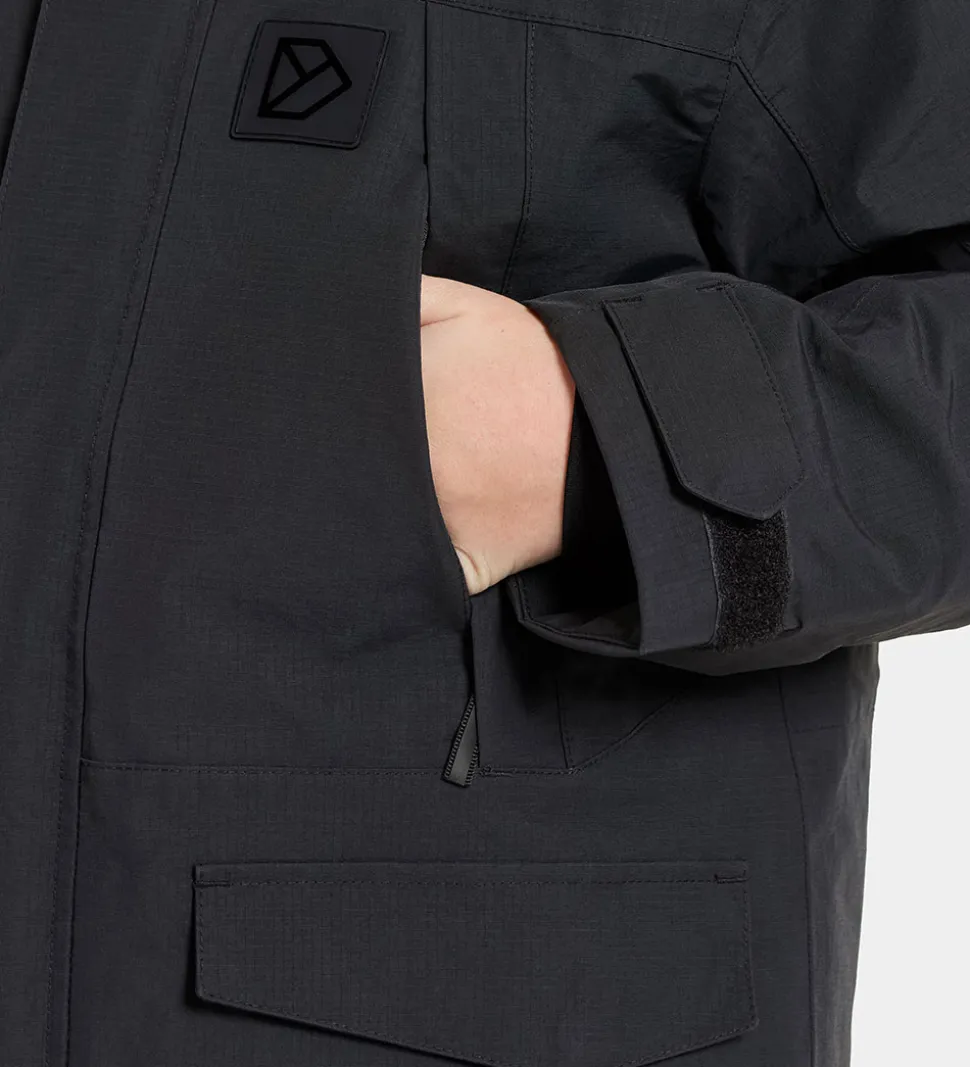 Ved ærmerne er der praktiske snefang med brede, strækbare kanter og et lille hul til tommelfingeren, og ærmekanten kan strammes ind med en velcrorem. På indersiden ved ærmekanten er der en praktisk plastring, som Didriksons handsker og luffer kan hægtes på.