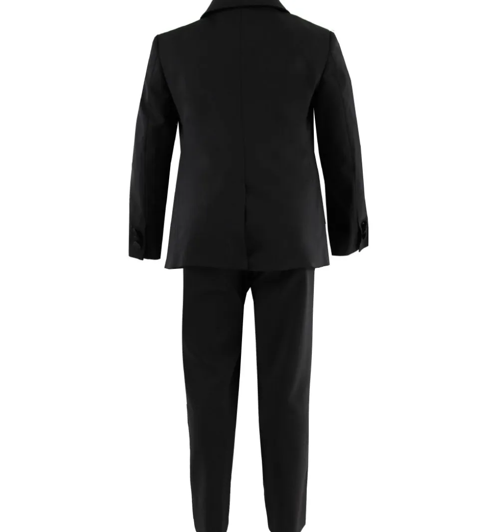 Elegant Dolce & Gabbana jakkesæt i sort med dekorative stikninger langs reversen, og både jakke og bukser har detaljer i en glatvævet kvalitet.