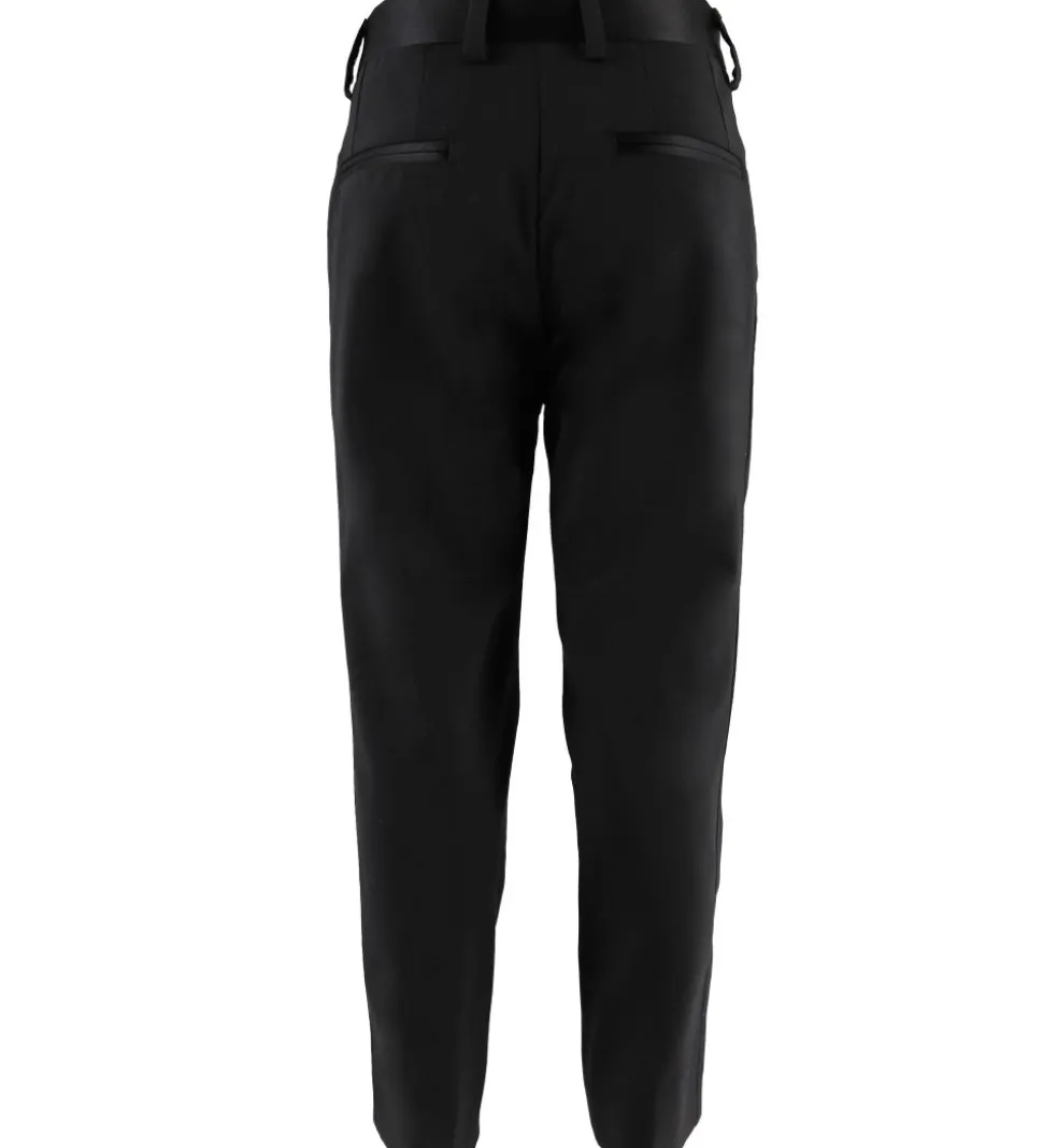 Dolce & Gabbana habitbukserne åbnes fortil med en stofbetrukket knap og en lynlås. I taljen er der bæltestropper, så bukserne kan styles med et smart bælte. Habitbukserne har skrå lommer fortil, og bagpå er der to snydelommer.