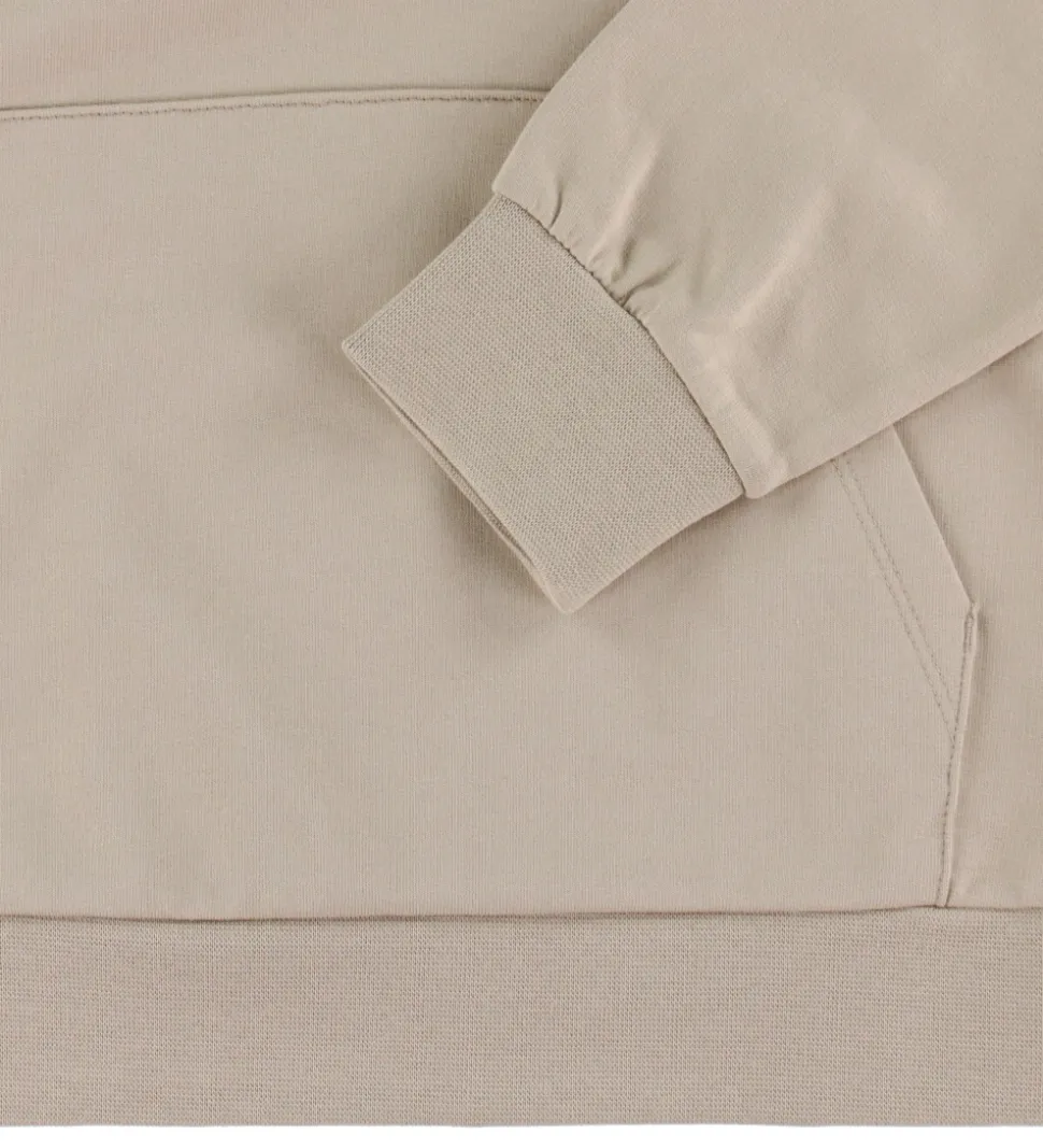Lækker EA7 hættetrøje i beigefarvet sweat, og fortil er der trykt et lille, sort logo.