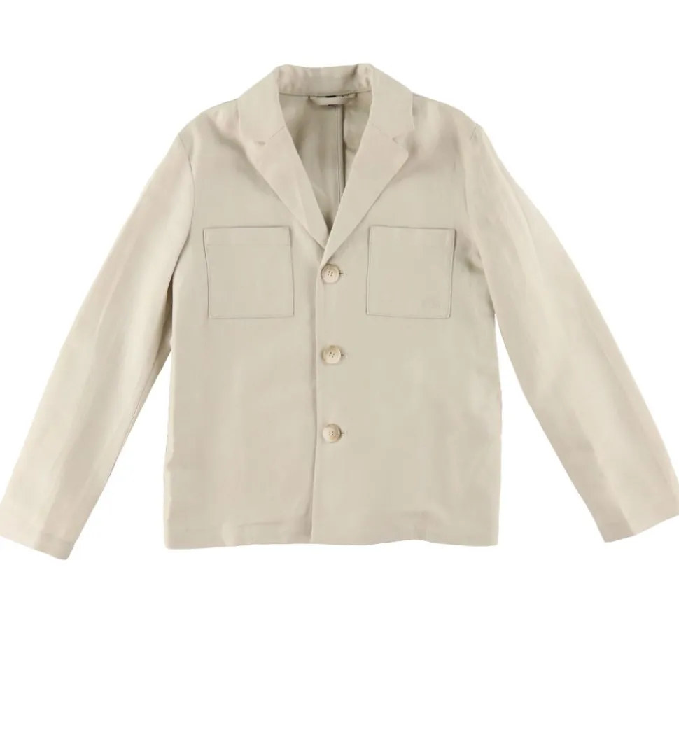 Flot Emporio Armani blazer i ensfarvet beige i en let blanding af bomuld og hør.