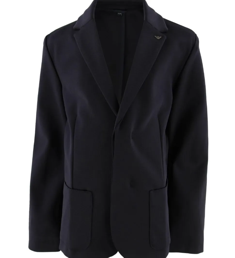 Elegant Emporio Armani blazer i navy i en let strækbar kvalitet og med en kraftig vævning.