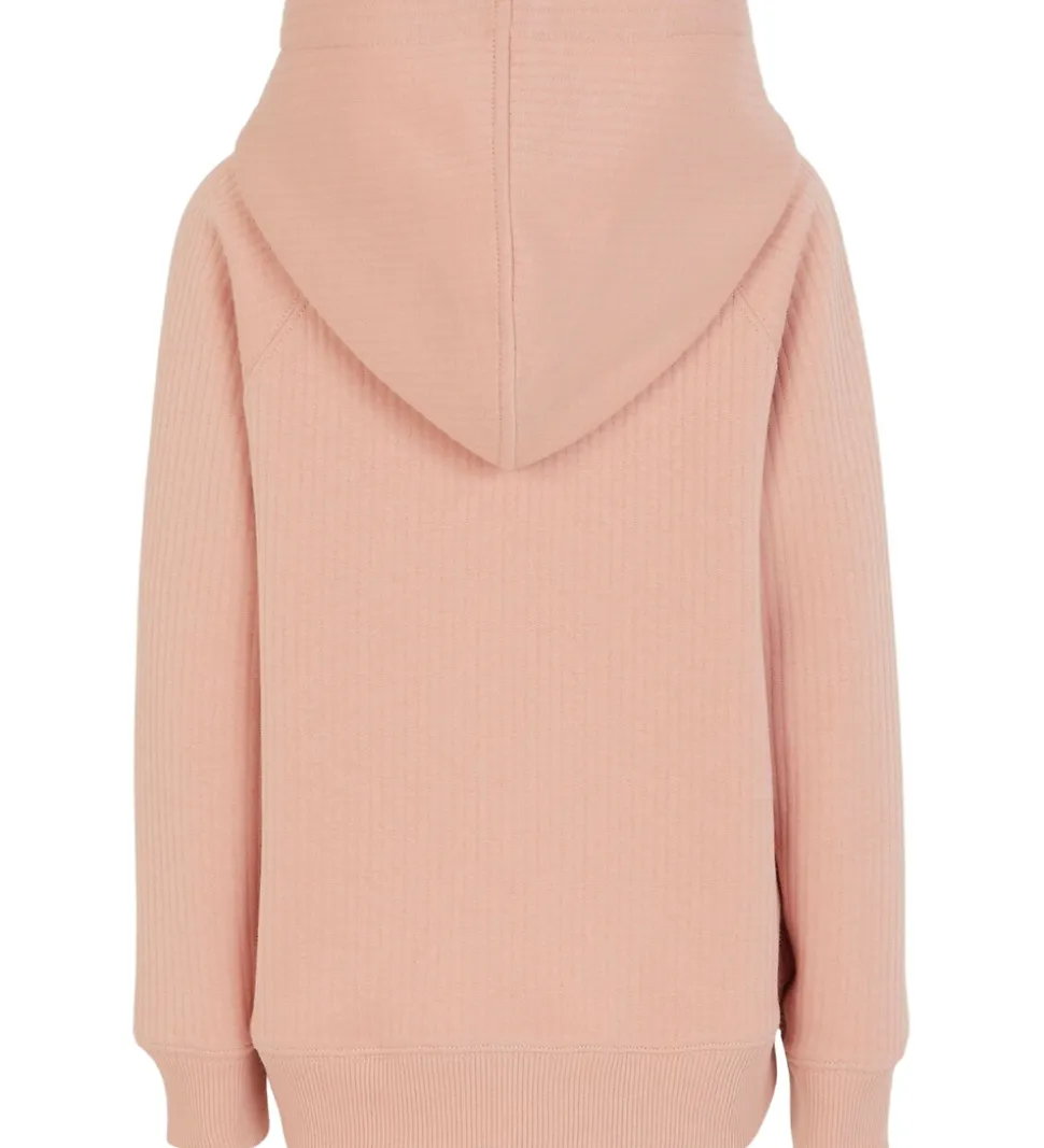 Fin Emporio Armani hættetrøje i rosa med en diskret quiltet struktur, der giver lodrette linker. Hættetrøjen har et stilfuldt, broderet logo på brystet. Emporio Armanis hættetrøje har en klassisk, rummelig kængurulomme og bløde ribkanter ved livet og ærmerne, der sikrer en god pasform. Hættetrøjen er lavet i en blød bomuldsjersery.