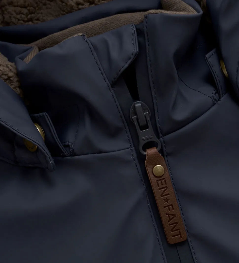 En Fant flyverdragten åbnes fortil ved hjælp af en lynlås med fleeceforet hagebeskytter og indvendig vindstolpe. Den er justeret med en elastikindsats i ryggen, og på fronten er der to skrå lynlåslommer.