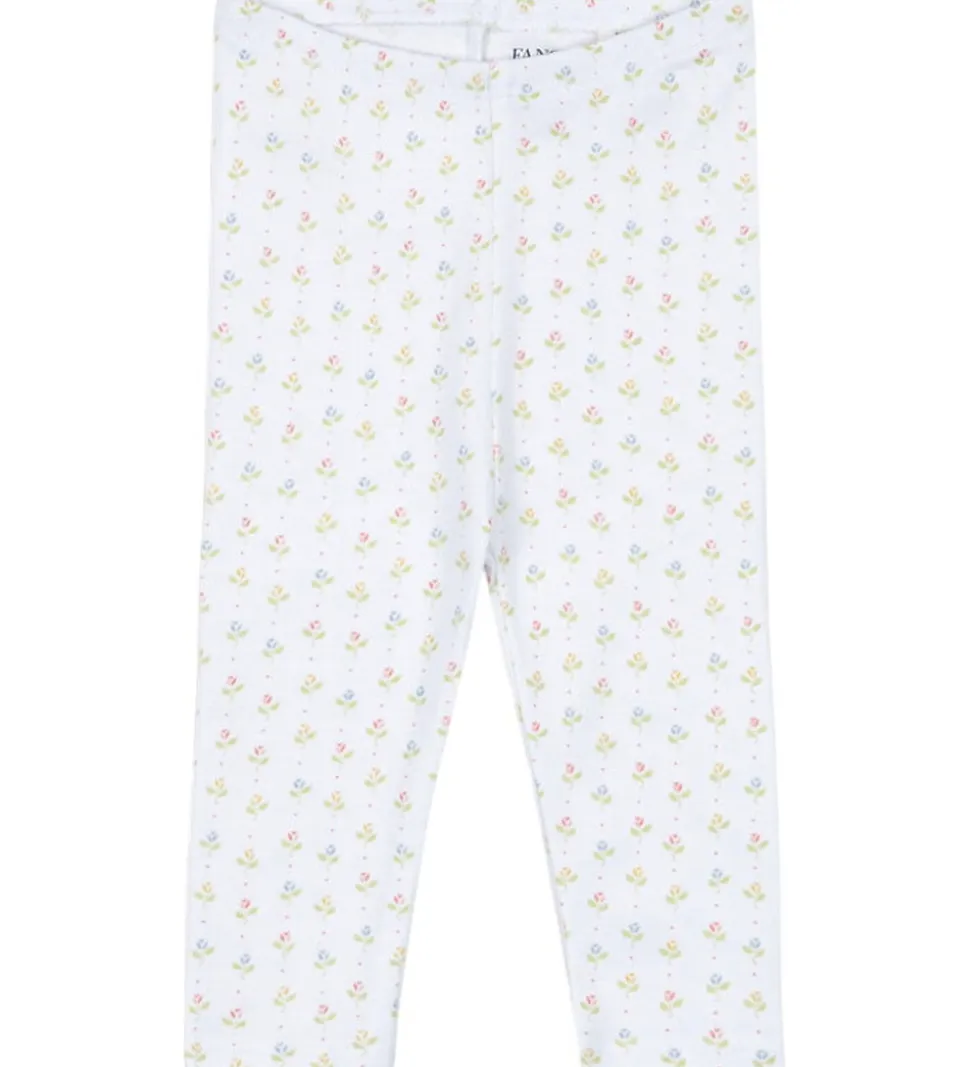 Lækre bukser fra Fanga Fontana i hvid med et delikat blomsterprint i lyse farver. Fanga Fontana bukserne har en elastisk talje, der giver mulighed for en regulerbar pasform. Buksebenene afsluttes med en simpel kant, som skaber et rent og stilfuldt look.