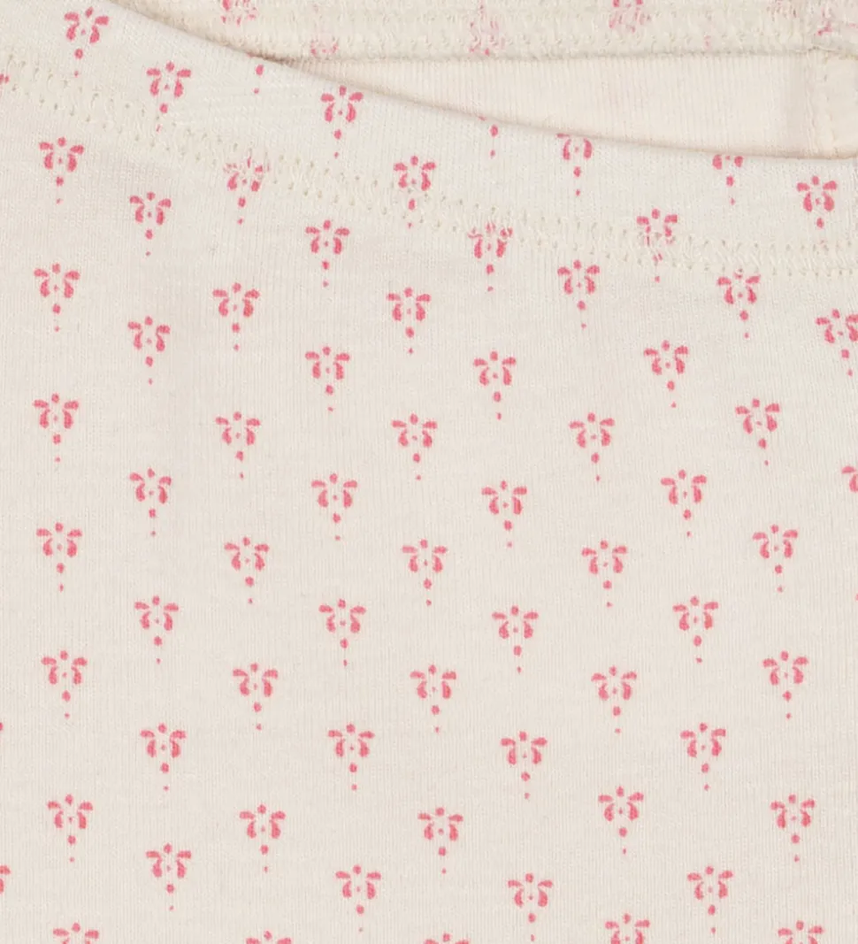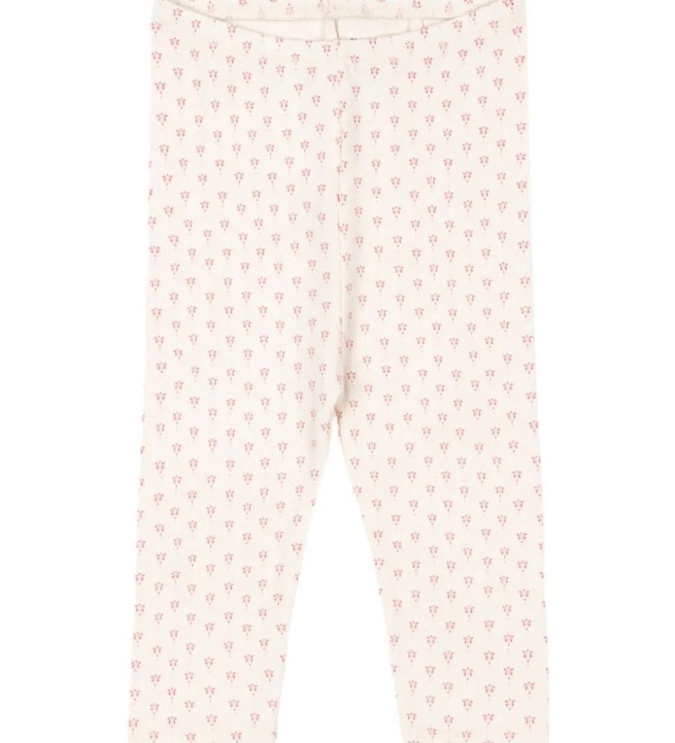 Behagelige bukser fra Fanga Fontana i hvid med et fint print af små, rosa motiver. Pasformen er tætsiddende, og taljen er elastisk for bedre fleksibilitet. Buksebenene har en enkel kant, der giver et rent look.