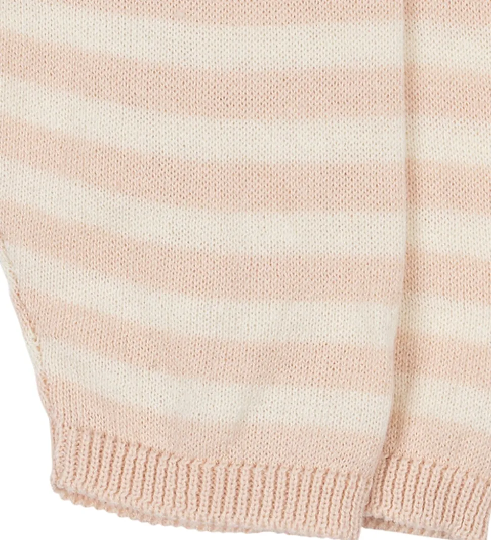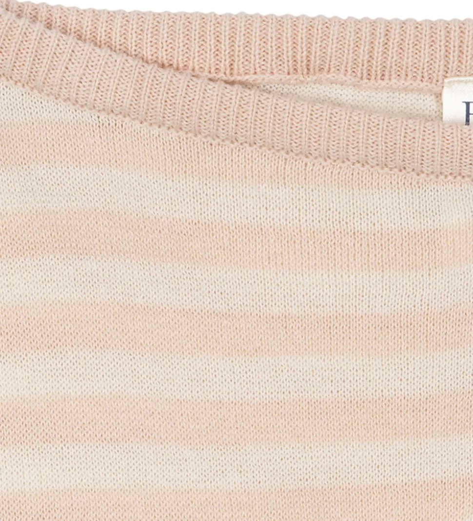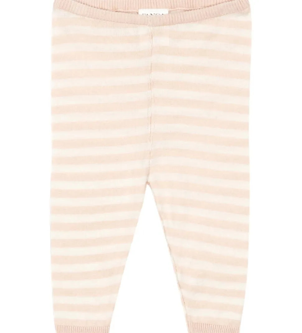 Lækre bukser fra Fanga Fontana i en cremehvid nuance med vandrette, lyserosa striber. Fanga Fontana bukserne har en elastisk talje, der sikrer en behagelig pasform. Kanterne på buksebenene er afsluttet med ribkanter, hvilket giver et pænt og enkelt look.