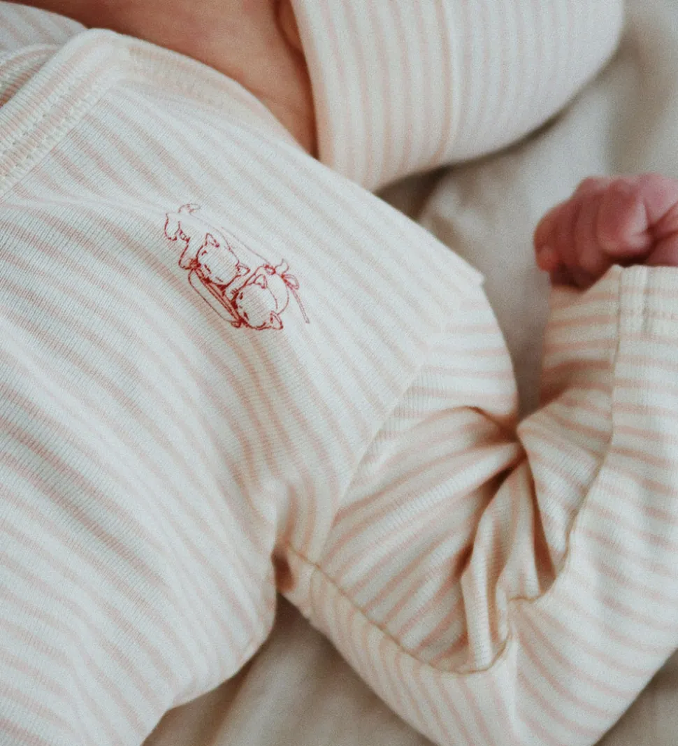 Behagelig Fanga Fontana natdragt med lange ærmer i et diskret lyserødt og hvidt stribemønster.