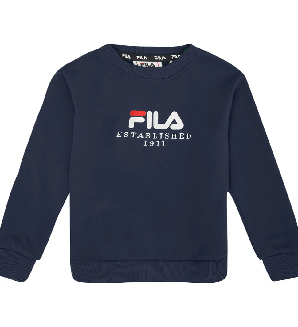 Elegant Fila sweatshirt i mørkeblå med et broderet Fila-logo og teksten “Established 1911” foran. Fila sweatshirten har rund hals og lange ærmer, hvilket giver et enkelt udtryk.