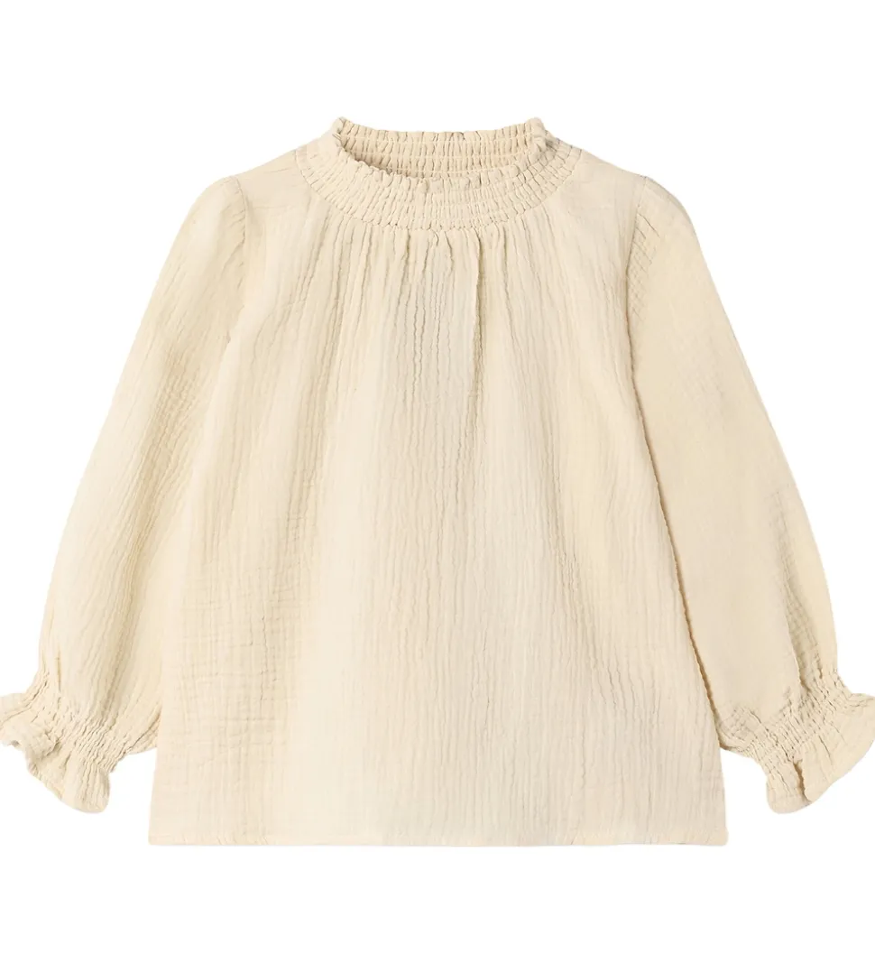 Elegant Fliink bluse i en blød, ensfarvet beige nuance med musselin struktur.