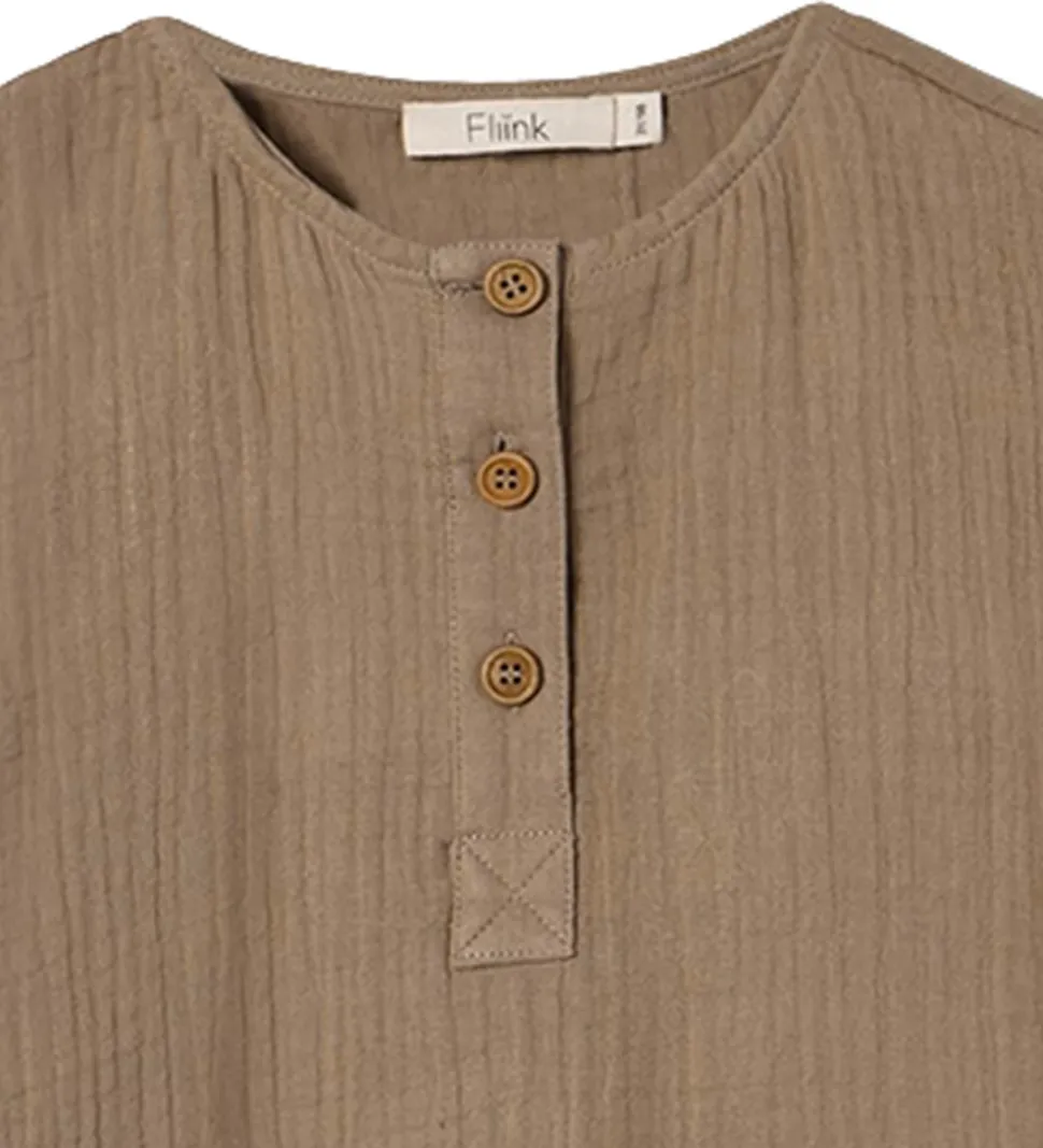 Skønt Fliink shortssæt bestående af en t-shirt og et par shorts i brun med en musselin-struktur.