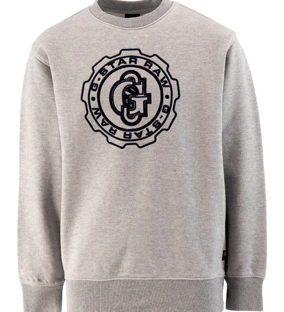 Flot G-Star RAW sweatshirt i meleret grå med et markant, broderet logo på fronten. G-Star RAW sweatshirten har lange ærmer og en rund hals, hvilket giver den et tidløst udtryk. Ribkanter ved hals, ærmer og bund tilføjer en klassisk finish til designet.
