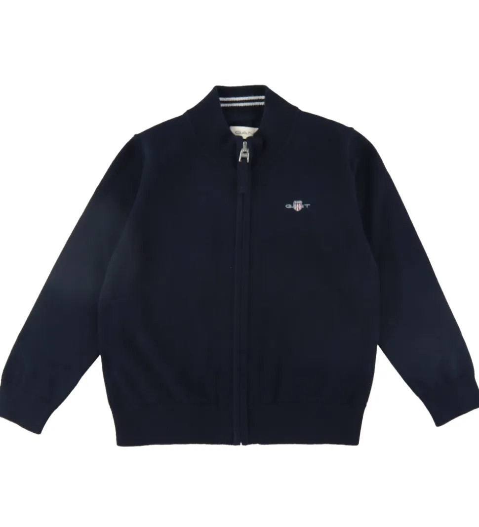 Flot GANT cardigan i navy strik med flot broderi af det klassiske GANT-skjold på venstre bryst.