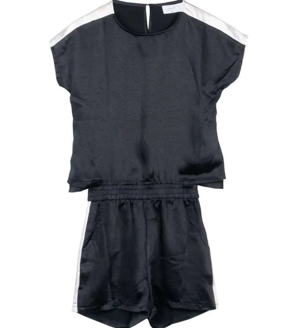 Grunt buksedragten har helt korte ærmer og korte ben. Buksedragten deler sig ved taljen i en t-shirt og et par shorts, der dog stadig hænger sammen fortil. Dragten har en rund halsudskæring, og den åbnes med en knap i nakken. Buksedragten har en god elastikkant i taljen, og på fronten er der åbne lommer.