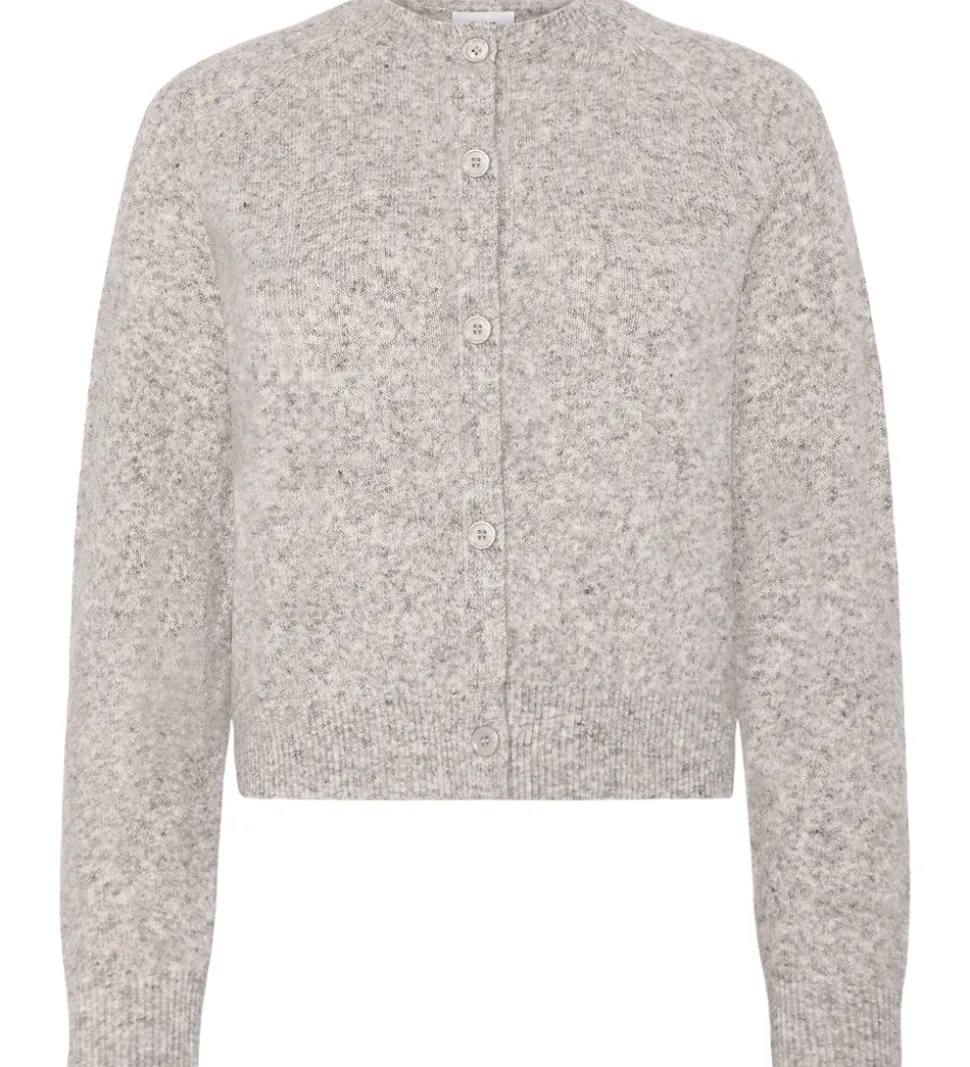 Flot Grunt cardigan i en beigemeleret strik. Cardiganen har en enkeltstående knaplukning foran og lange ærmer med en ribkant ved håndleddene. Grunt cardiganen har en rund halsudskæring, og den har en behagelig pasform, der gør den velegnet til mange lejligheder.