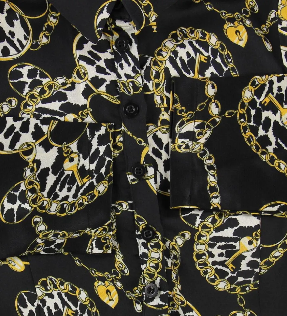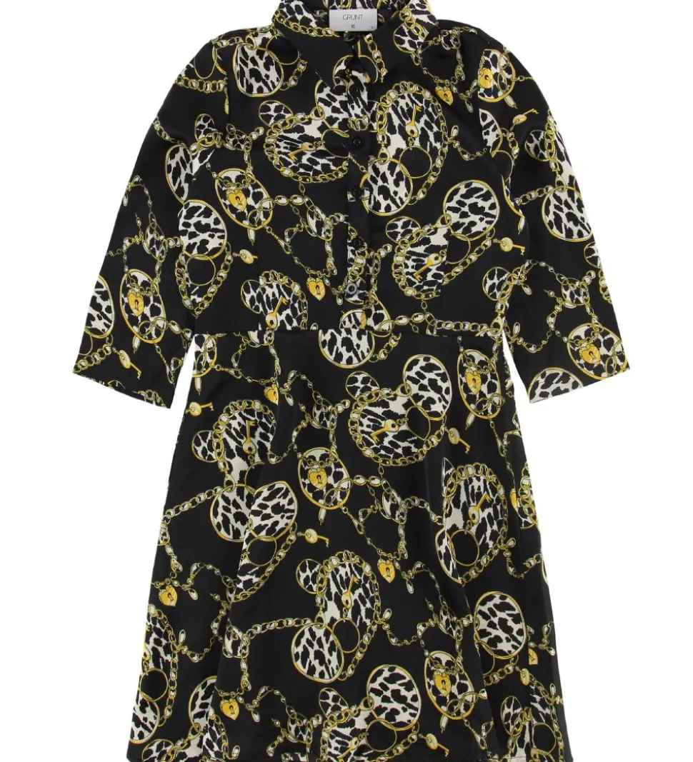 Fin Grunt skjortekjole i sort med et allover print af nøgler og låse.