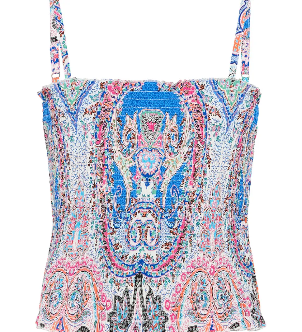 Grunt toppen er uden ærmer og den har smalle, justerbare skulderstropper. Toppen er i en flot smock struktur, og den er produceret i en blød og strækbar kvalitet.