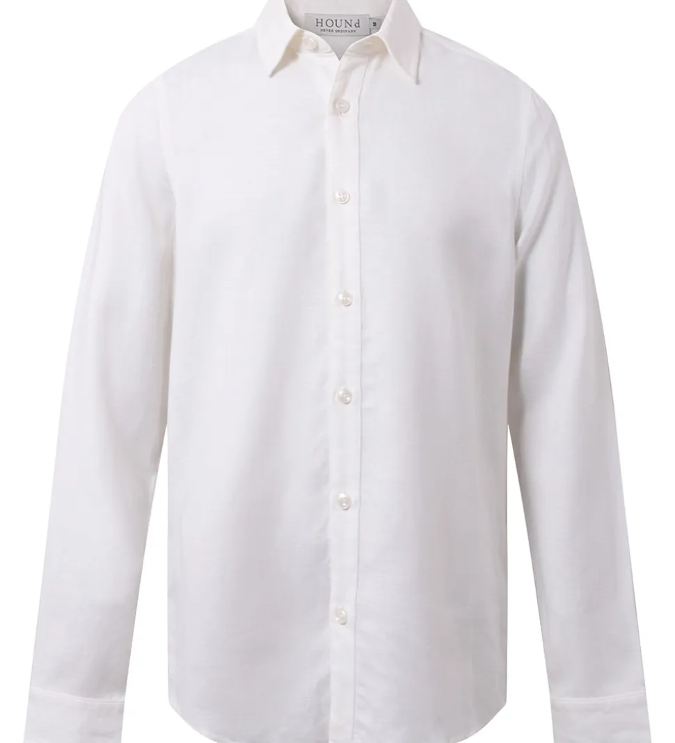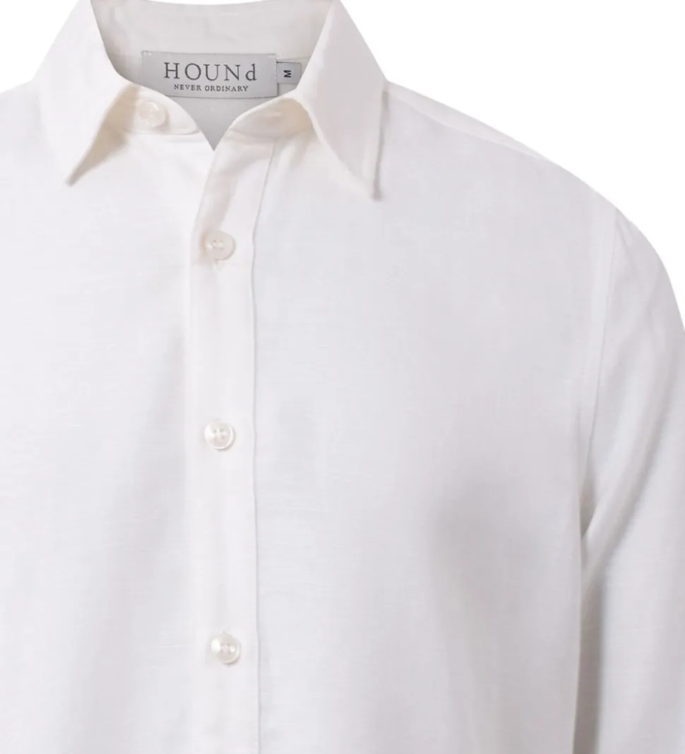 Flot Hound skjorte i ensfarvet hvid i en fastvævet kvalitet i lækker blanding af hør og viskose.