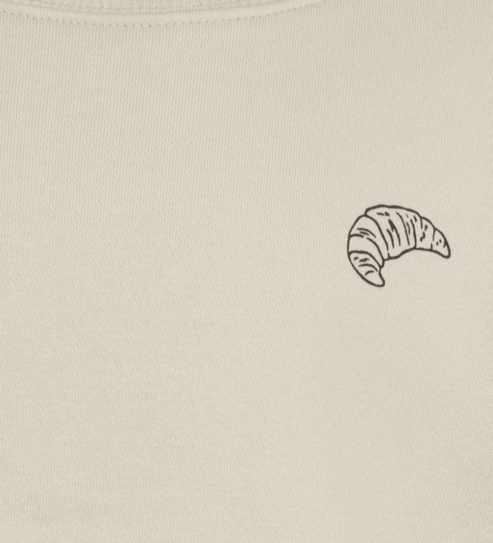 Sej Hound sweatshirt i lys beige med et print af en crossaint på venstre bryst. På ryggen er der et stort print af en crossaint og en kop kaffe med teksten “Slow Life” og “Take A Little Break”. Hound sweatshirten har en rund hals og lange ærmer med ribkanter. Indvendigt er der blødt, børstet bomuld.
