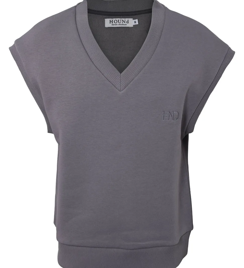 Dejlig Hound vest i en flot mørkegrå farve. Hound logoet er diskret broderet på brystet, hvilket tilføjer et stilfuldt touch til designet. Perfekt til forskellige outfits.