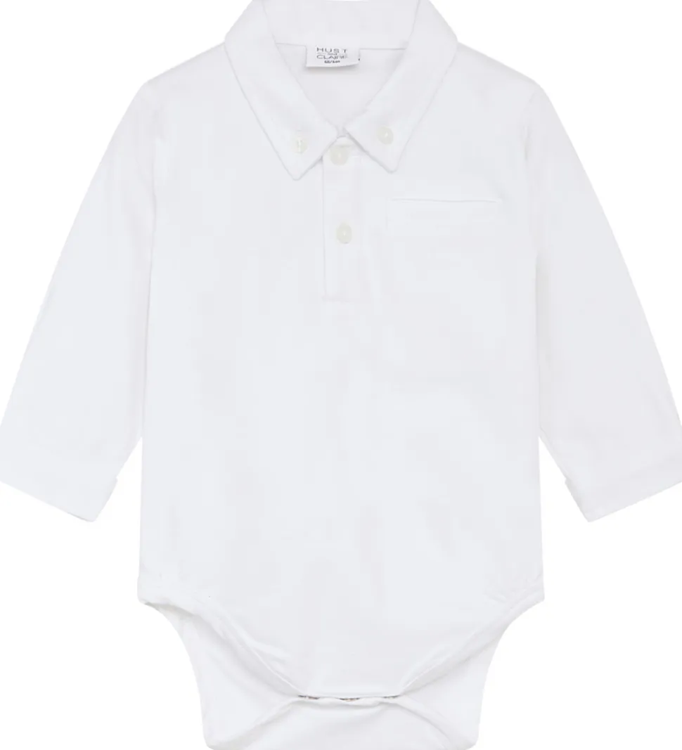 Hust and Claire skjorteboyen har lange ærmer med brede kanter og en enkelt manchetknap, og i halsåbningen har den en klassisk krave. I venstre side er der en snydelomme, og fortil har den en stolpelukning med knapper. Mellem benene er der trykknapper.