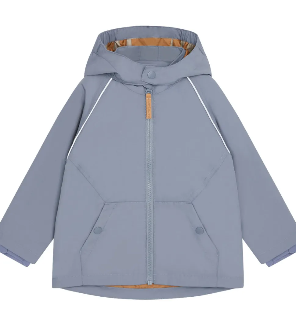 Hust and Claire sommerjakken har en aftagelig hætte, som sidder fast med trykknapper, og den lukkes foran hagen med en trykknap. Ærmerne har brede snefang med et lille hul til tommelfingeren, og bunden af jakken kan strammes ind med en elastiksnøre.