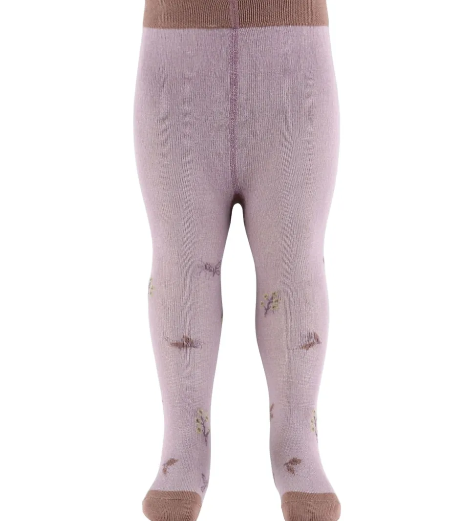 Fine Hust and Claire strømpebukser i en flot lilla nuance med et allover print af små, diskrete blomster, blade og agern.