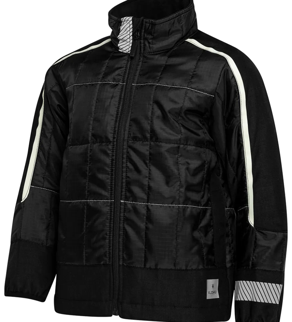Smart ILDHU termojakke i sort med en quiltet struktur og mange reflekser for høj synlighed i trafikken.
