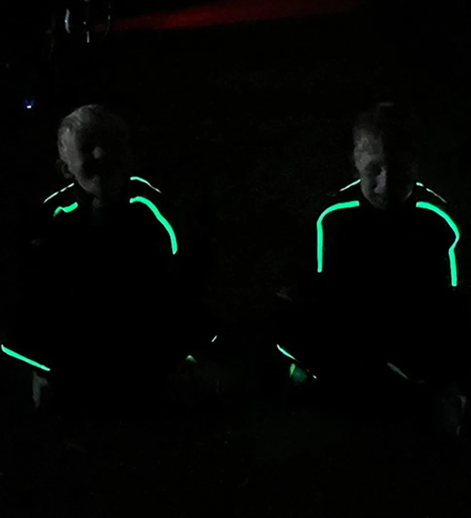 Udover normale reflekser er termojakken udstyret med selvlysende VizLite DT-reflekspaneler, som lyser i op til 8 timer efter at have ladet op i bare 5 minutters dagslys eller 10 minutters lampelys. Udover at være selvlysende er reflekspanelerne også reflekterende og fungerer som ekstra reflekser.