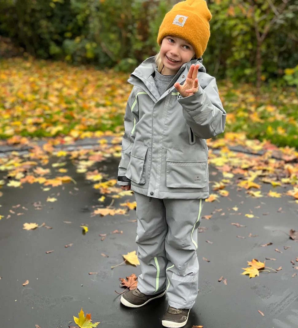 Lækker ILDHU vinterjakke i lysegrå med mange reflekser for høj synlighed i trafikken.